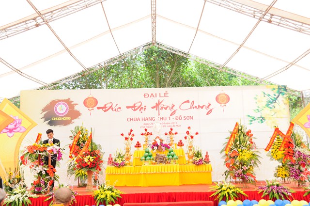 Quang lâm buổi lễ có sự hiện diện của TT. Thích Thanh Giác – Phó trưởng Ban Hoằng Pháp TƯ GHPGVN, phó trưởng Ban thường trực BTS GHPGVN Tp. Hải Phòng, trụ trì chùa Hang, Đồ Sơn, trưởng BTC Đại lễ, Đại Đức Thích Giác Sơn – Phó ban trị sự GHPGVN quận Lê Chân, Đại Đức Thích Giác Hiệu – Phó Ban tổ chức Đại lễ, Ni Sư Thích Tâm Chính –Trưởng Ban từ thiện – xã hội GHPGVN Tp. Hải Phòng cùng đông đảo chư tôn thiền đức Tăng Ni, nội ngoại thành của thành phố Hải Phòng.