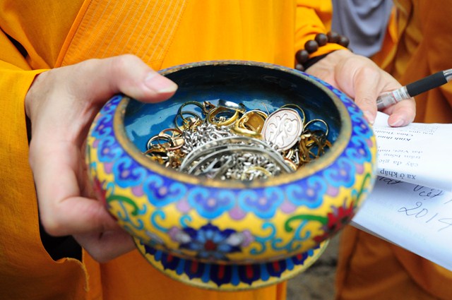 Tại buổi lễ Chư tôn đức Tăng Ni, quý Phật tử, quý thiện nam, tín nữ gần xa đã làm lễ niêm hương, bạch Phật, trì chú gia trì cho buổi lễ rót đồng đúc đại hồng chung được thành tựu viên mãn, đồng thời cầu nguyện cho thế giới hòa bình, chúng sinh an lạc.