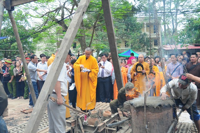 Buổi lễ rót đồng đúc Đại hồng chung tại chùa Hang, Đồ Sơn đã được thành tựu viên mãn trước sự hoan hỷ của chư tôn đức tăng ni chứng minh, quý thiện nam, tín nữ, quý Phật tử gần xa và nhân dân địa phương.