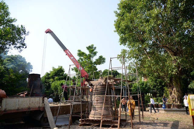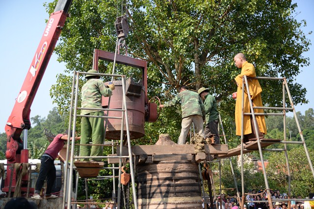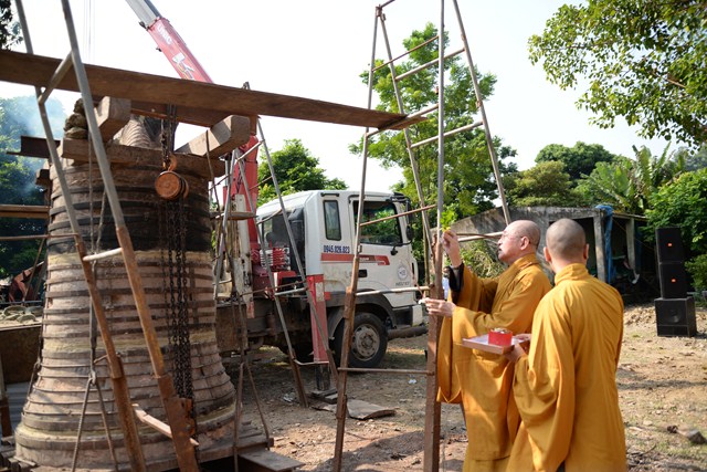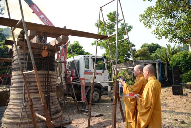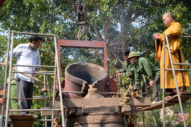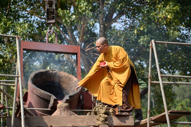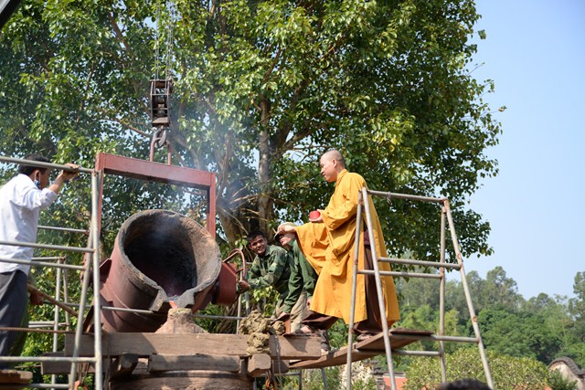 Thượng tọa Thích Nguyên Bình làm lễ sái tịnh khuôn đúc đại hồng chung