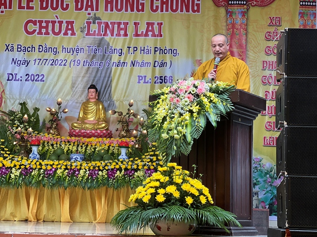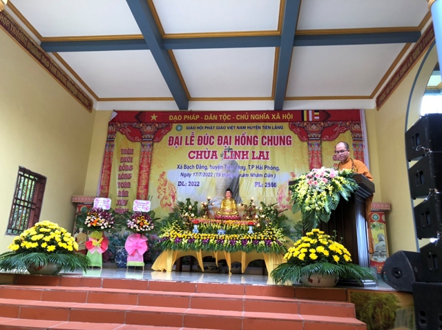 Quang lâm tham dự, chứng minh buổi lễ có TT. Thích Quảng Minh – Ủy viên thường trực, trưởng Ban văn hóa GHPGVN thành phố Hải Phòng, trưởng Ban trị sự GHPGVN huyện Tiên Lãng; Đại đức Thích Bản Quyền – Ủy viên BTS GHPGVN thành phố Hải Phòng, Trưởng BTS GHPGVN huyện Vĩnh Bảo; Đại đức Thích Tục Tuệ – Phó trưởng BTS GHPGVN huyện Tiên Lãng, trụ trì chùa Linh Lai, trưởng Ban tổ chức Đại lễ, cùng đông đảo chư tôn đức Tăng Ni nội ngoại thành của thành phố Hải Phòng và chư tôn đức Tăng Ni một số tỉnh thành lân cận.
