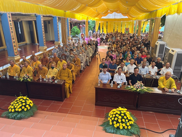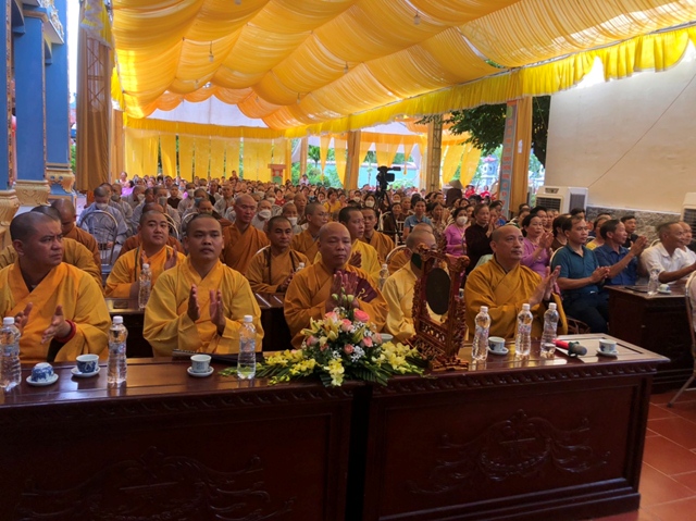 Trước khi kết thúc buổi lễ, Chư tôn đức Tăng Ni, các Phật tử và nhân dân địa phương đã làm lễ dâng hương, bạch Phật, lễ chú nguyện, sái tịnh và rót đồng đúc Đại Hồng Chung trong không khí hoan hỷ, trang nghiêm thành kính nhân kỷ niệm ngày Bồ Tát Quán Thế Âm thành đạo 19/06 âm lịch.