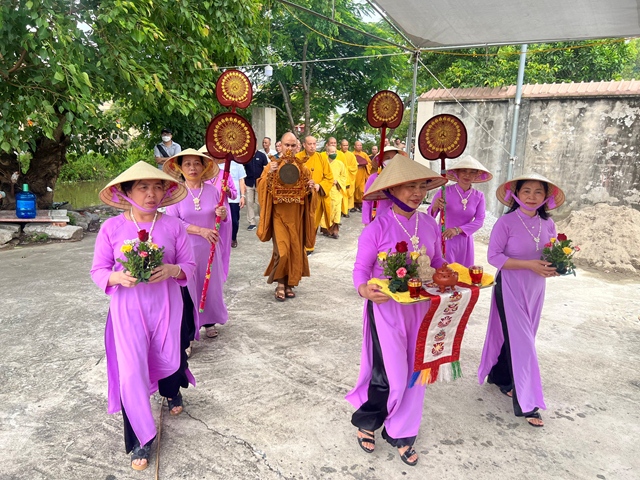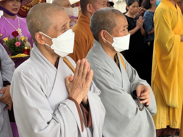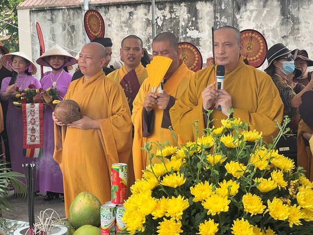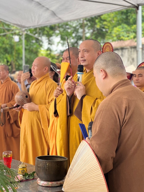 Trước khi kết thúc buổi lễ, Chư tôn đức Tăng Ni, các Phật tử và nhân dân địa phương đã làm lễ dâng hương, bạch Phật, lễ chú nguyện, sái tịnh và rót đồng đúc Đại Hồng Chung trong không khí hoan hỷ, trang nghiêm thành kính nhân kỷ niệm ngày Bồ Tát Quán Thế Âm thành đạo 19/06 âm lịch.