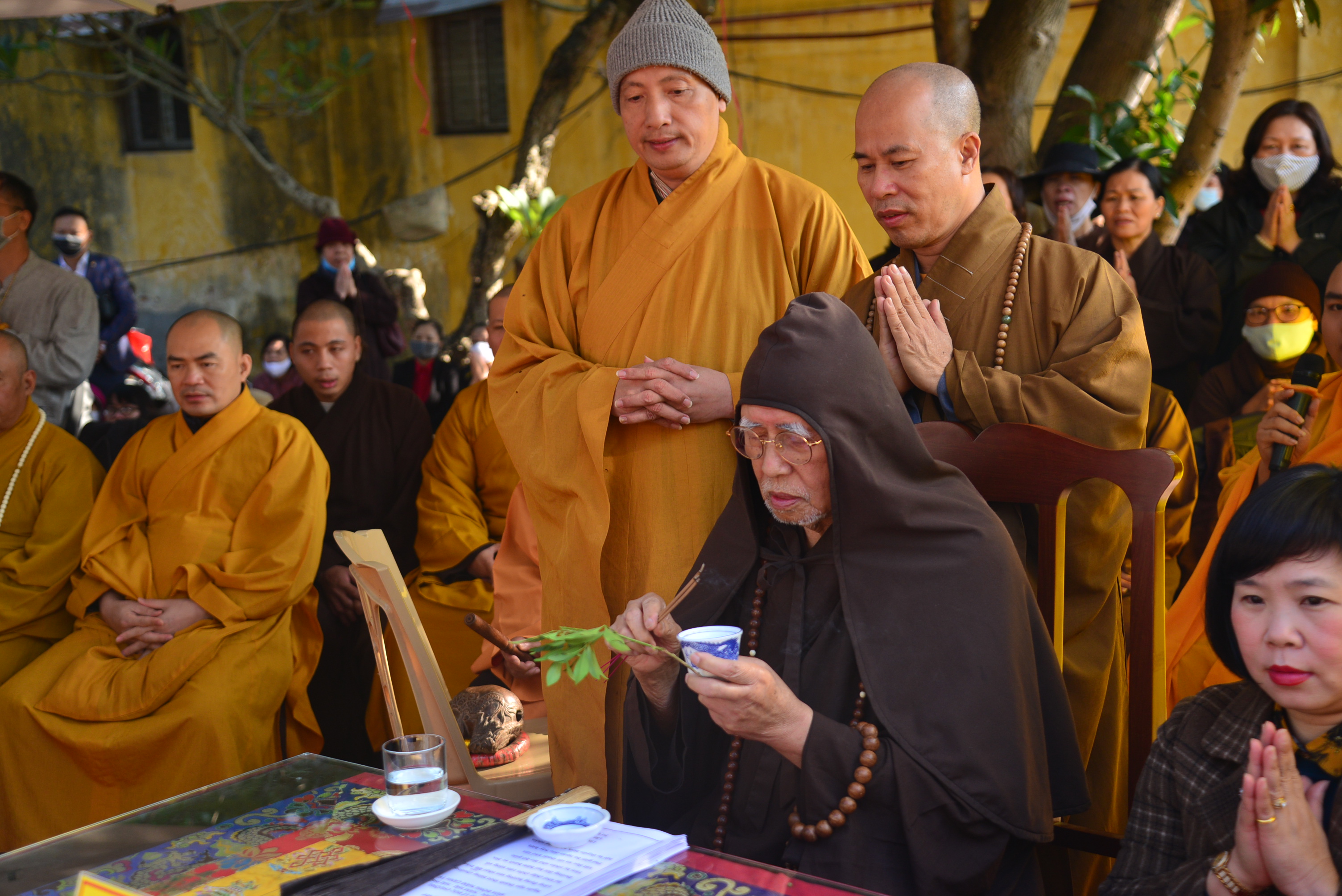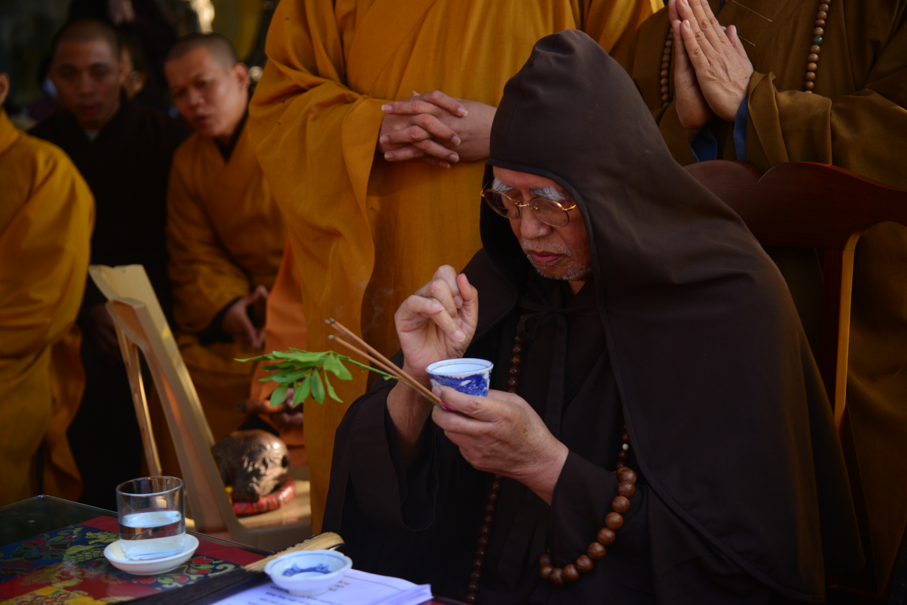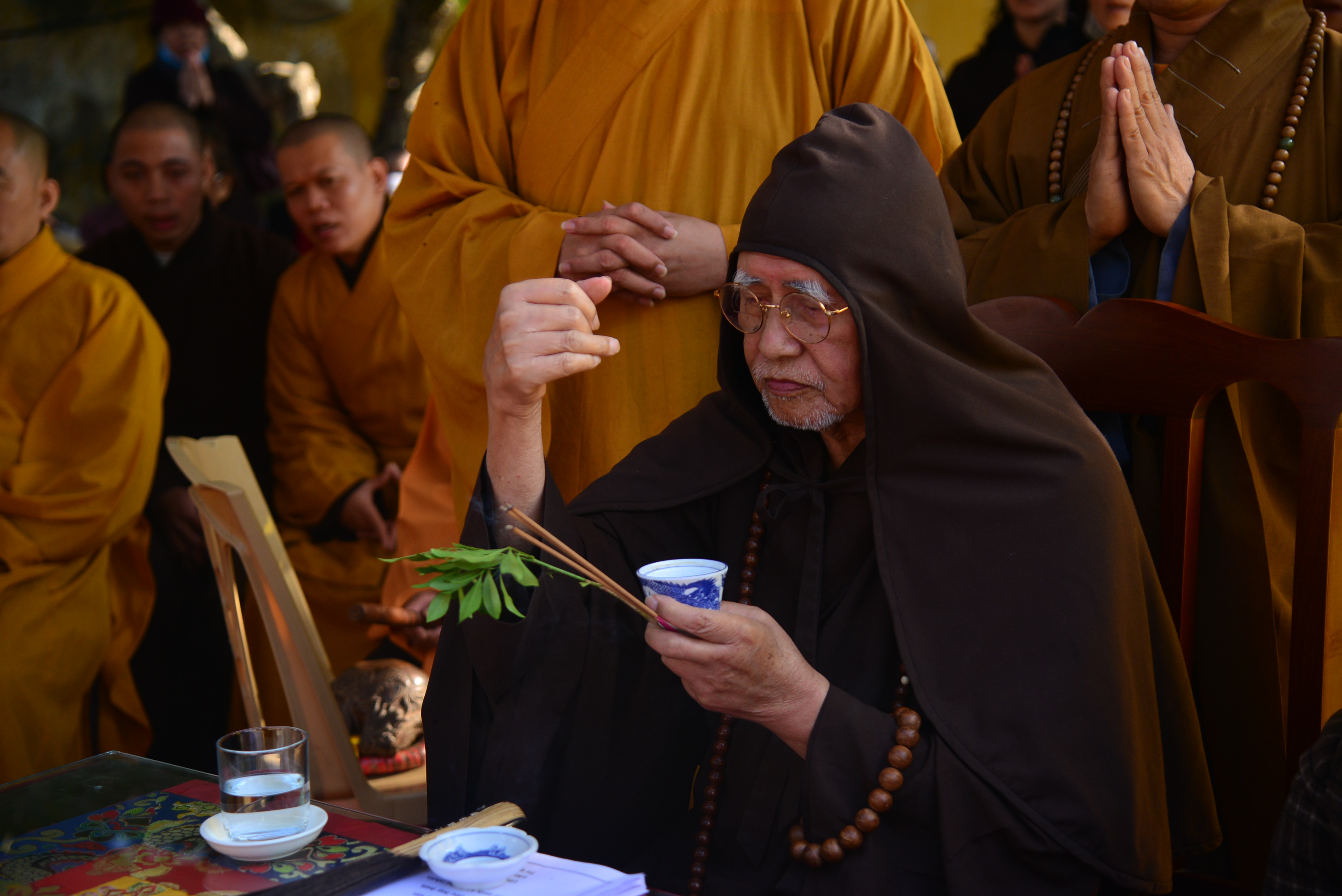 Đại lão Hòa thượng Thích Trí Tịnh cử hành nghi lễ sái tịnh, gia trì, chú nguyện đúc đại hồng chung