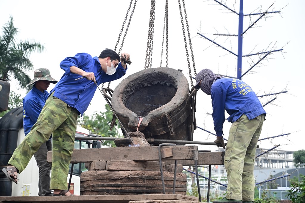 Chính thức rót đồng đúc đại hồng chung và đúc khánh chùa Kim Cương