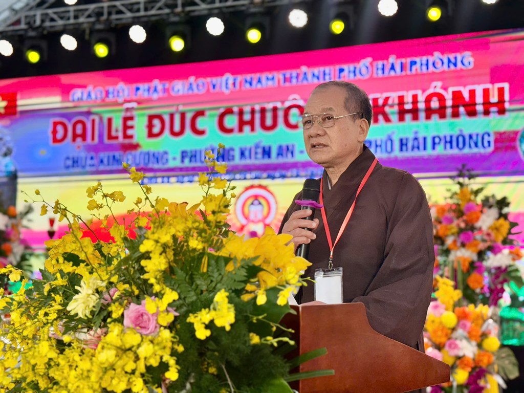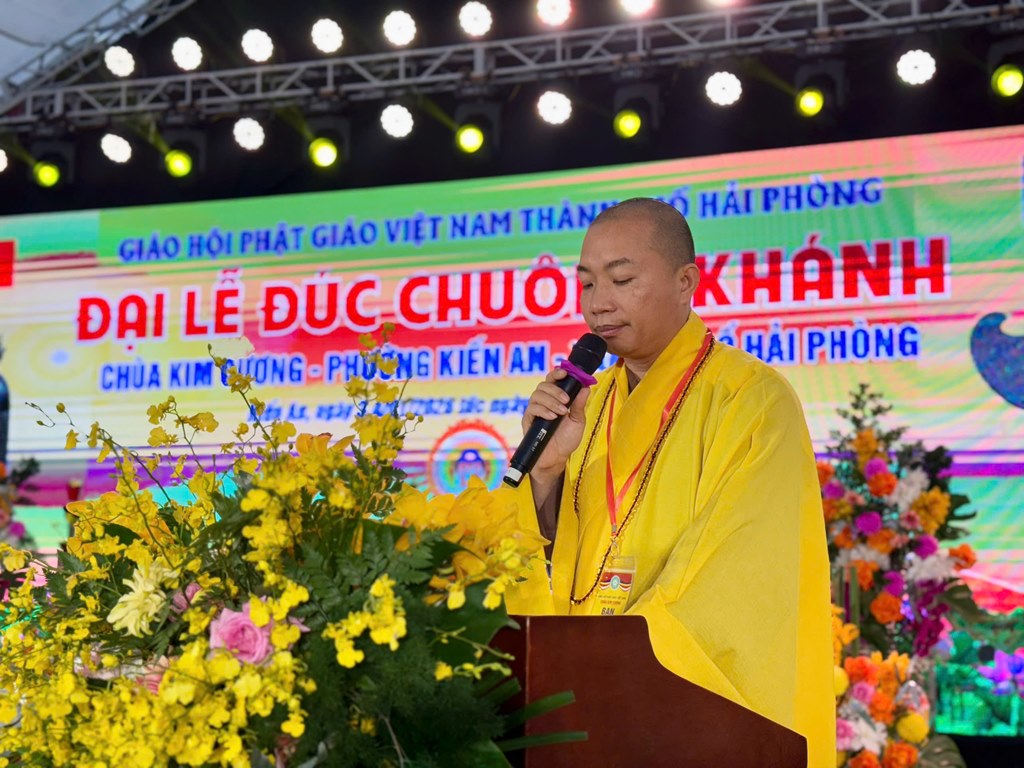 Đại diện chính quyền phường Kiến An phát biểu chúc mừng tại đại lễ