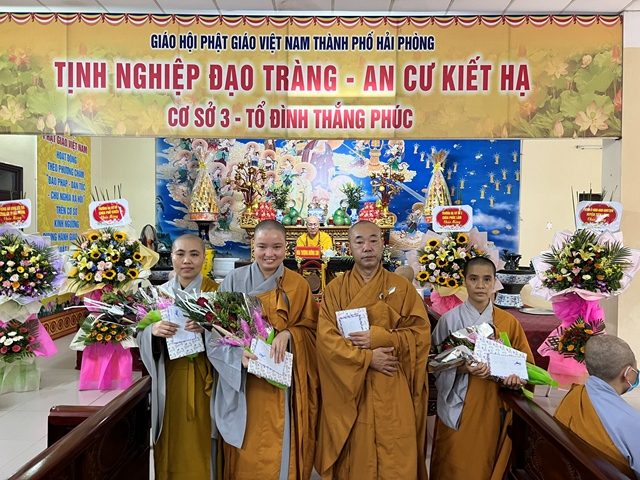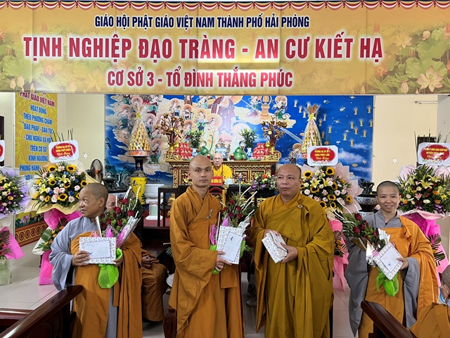 Nhân dịp này, các hành giả an cư đạt thành tích cao trong thời gian tu học tại hạ trường đã được Hòa thượng Đường chủ hạ trường, Hòa thượng Trưởng ban Giáo thọ và Ban tổ chức khóa an cư kiết hạ trao tặng hoa và quà, tán dương công đức, chúc mừng, động viên, khích lệ chư Tôn đức Tăng Ni tiếp tục tinh tấn tu học, xứng đáng là những Sứ giả của Như Lai.