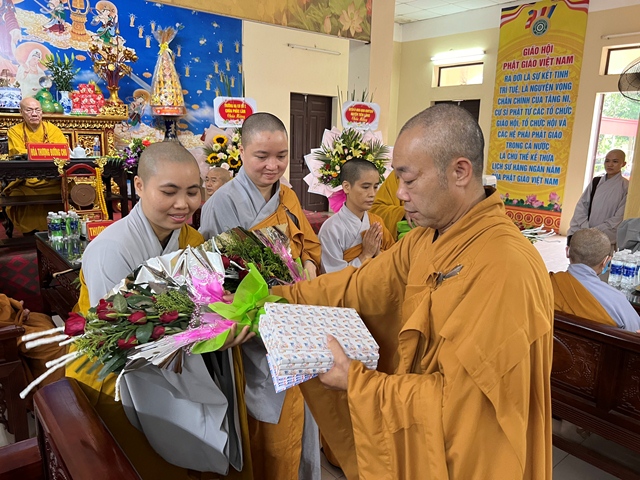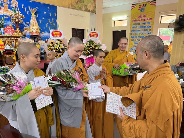 BTC khóa an cư kiết hạ trao tặng hoa và quà cho các hành giả an cư có kết quả học tập tốt trong khóa an cư kiết hạ.