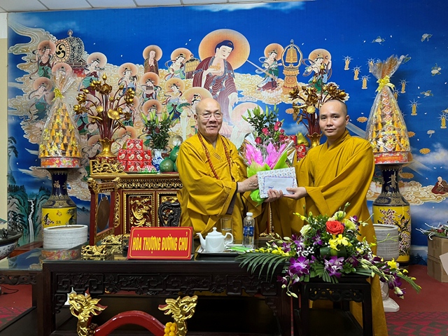 HT Thích Quảng Tùng trao phần thưởng cho hành giả an cư đạt kết quả cao trong 3 tháng an cư kiết hạ.