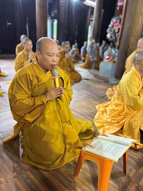 Tiếp đó, thay mặt cho các hành giả an cư tại hạ tổ đình Thắng Phúc, ĐĐ. Thích Bản Điền – Chánh Duy-na đã lên báo cáo tóm tắt tổng kết quá trình tu học của các hành giả an cư trong 3 tháng an cư kiết hạ; cùng với 2 trường hạ Cơ sở 1 ( tổ đình Phổ Chiếu) và Cơ sở 2 ( tổ đình Dư Hàng), trường hạ tổ đình Thắng Phúc (Cơ sở 3), Ban tổ chức hạ trường vẫn tiếp tục duy trì giảng dạy năm nay tiếp tục nghiên cứu bộ kinh “Trường A Hàm”, nhằm giúp các hành giả có kiến thức cơ bản, nâng cao phát triển nhận thức mới, duy trì đọc bình văn theo truyền thống. Từ đó, giúp các hành giả an cư có thêm tư lương, xây dựng một tổ chức khóa hạ an cư mang tính chất đúng nghĩa.