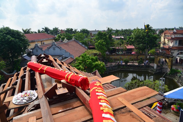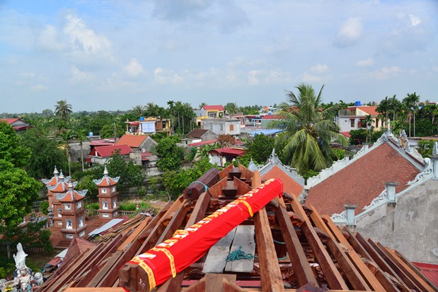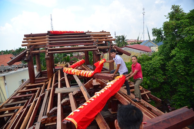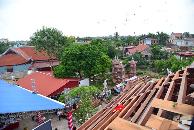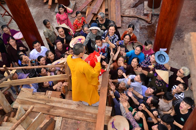 Chư tôn đức và chính quyền cất nóc ngôi Đại Hùng Bảo Điện