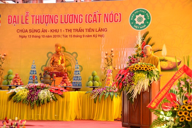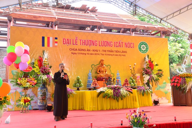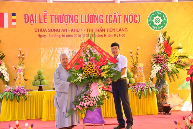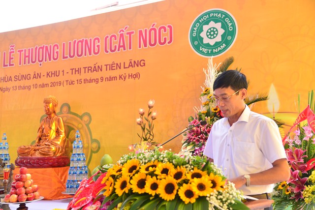 Nhân dịp này, Hòa thượng Thích Quảng Tùng – Trưởng Ban trị sự GHPGVN thành phố Hải Phòng đã ban đạo từ ôn lại truyền thống lịch sử anh dũng của đồng bào Phật tử, nhân dân huyện Tiên Lãng, vai trò của ngôi chùa trong lòng mỗi người dân Việt. Đồng thời, Hòa thượng cũng nói lên ý nghĩa, công đức của việc xây dựng chùa và tán thán công đức của sư thầy trụ trì, các nhà hảo tâm, các mạnh thường quân, cũng như đồng bào Phật tử, nhân dân địa phương.