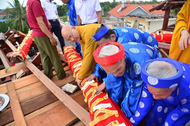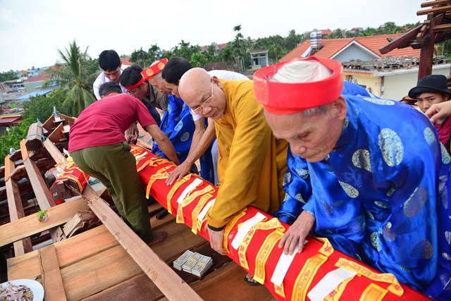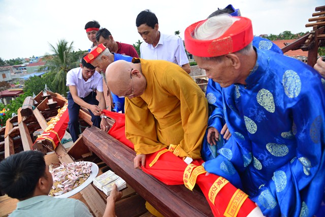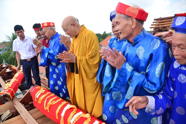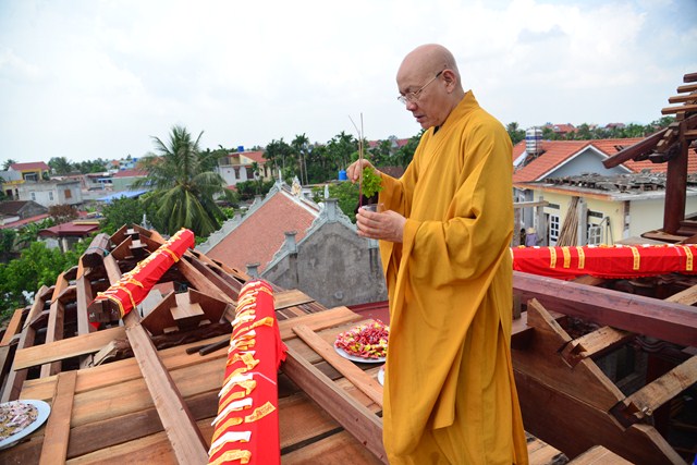 Chư tôn đức và chính quyền địa phương làm lễ thượng lương