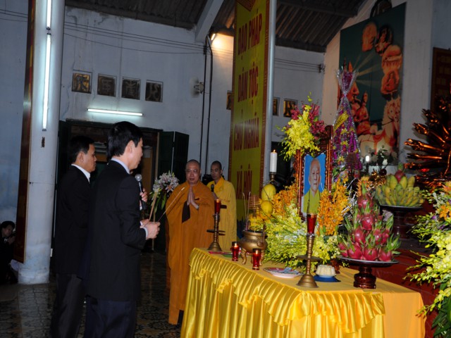 Quang lâm buổi lễ về phía Giáo hội có sự hiện diện của TT. Thích Thanh Giác – Ủy viên HĐTS – Phó trưởng Ban thường trực Ban Hoằng Pháp TW GHPGVN – Phó trưởng Ban thường trực BTS GHPGVN Tp. Hải Phòng đồng thời cũng là trưởng BTC buổi lễ. TT. Thích Nguyên Bình – Ủy viên Ban văn hóa TW GHPGVN kiêm trưởng Ban văn hóa GHPGVN Tp. Hải Phòng, Chư tôn đức Tăng Ni ủy viên BTS GHPGVN Tp. Hải Phòng, Chư tôn đức Tăng Ni đại diện BTS GHPGVN các quận, huyện cùng đông đảo Chư tôn đức Tăng Ni nội ngoại thành Tp. Hải Phòng và hàng trăm bà con Phật tử sinh hoạt tại các chùa, đạo tràng trên địa bàn Hải Phòng.