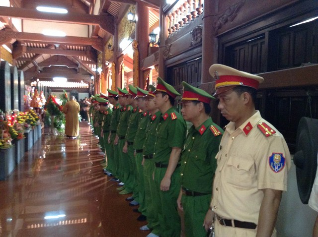 Tiếp đó, chư tôn đức Tăng Ni và lãnh đạo chính quyền thành phố, chính quyền quận Hồng Bàng, lực lượng vũ trang nhân dân của thành phố đã làm lễ dâng hương tại nhà tưởng niệm các anh hùng liệt sỹ quận Hồng Bàng trong niềm thành kính và xúc động.