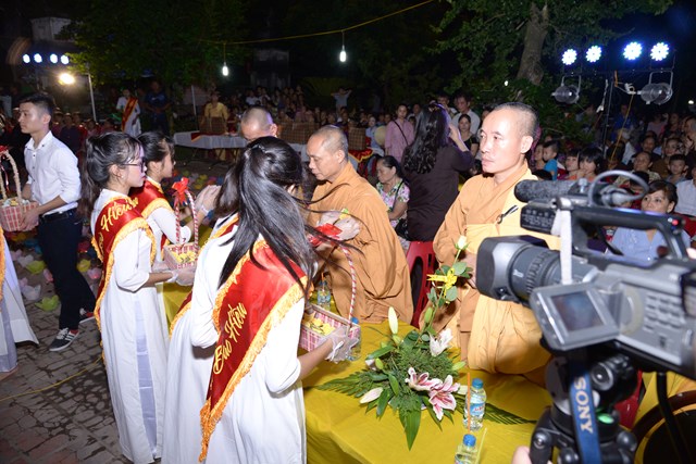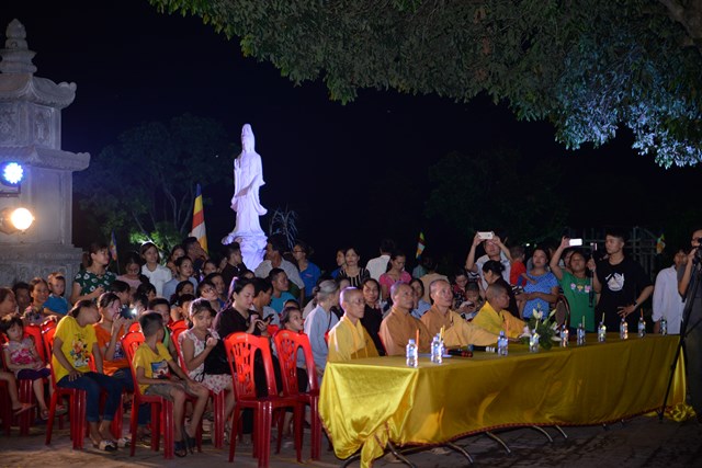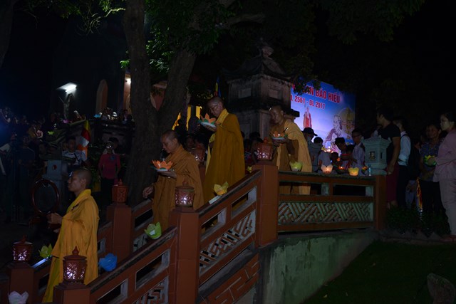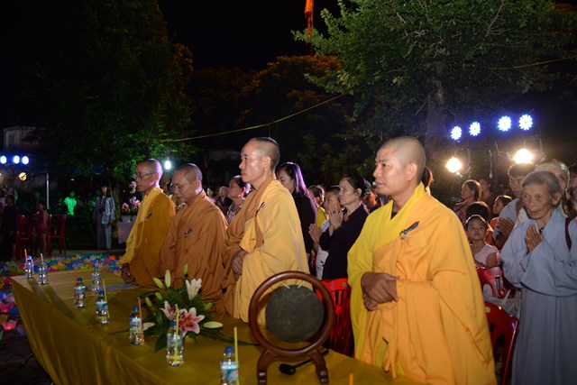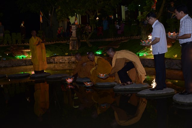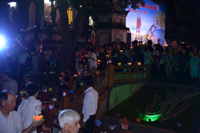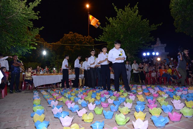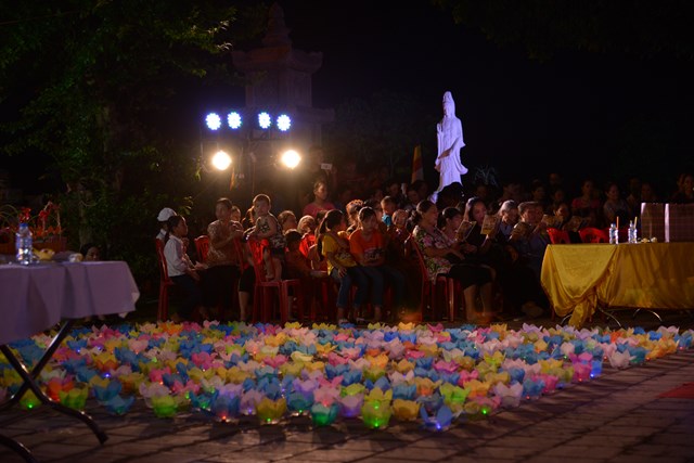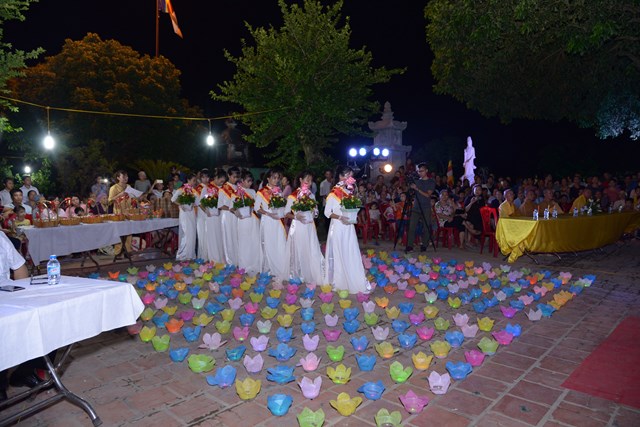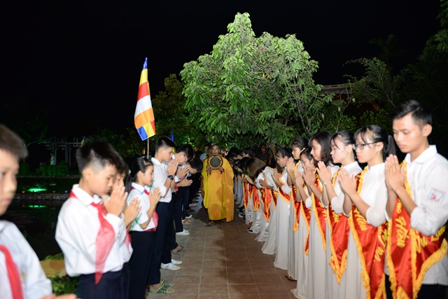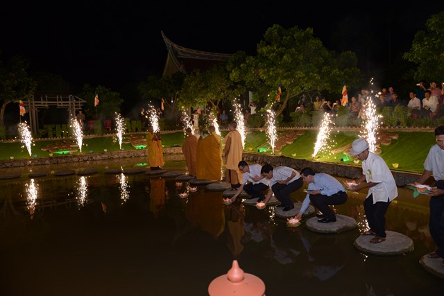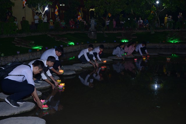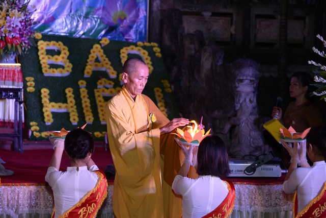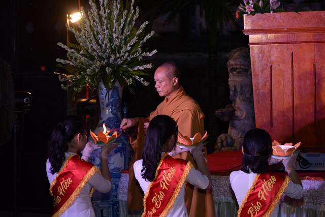 Thời khắc thiêng liêng nhất của buổi lễ đã tới khi toàn thể chư tôn đức tăng xin ngọn lửa của tình thương và sự hiểu biết từ bàn Phật rồi truyền sang cho các bạn thanh thiếu niên Phật tử, quý quan khách, quý Phật tử, những ngọn đèn hoa đăng dần lan tỏa khắp chốn già lam, làm xua tan màn vô minh si ám, những ngọn nến biểu hiện cho tấm lòng thành kính nhất tri ân ông bà, cha mẹ, tri ân các anh hùng liệt sỹ, đồng bào tử nạn đã hy sinh cho độc lập tự do của Đất nước.