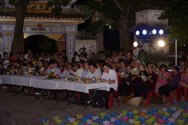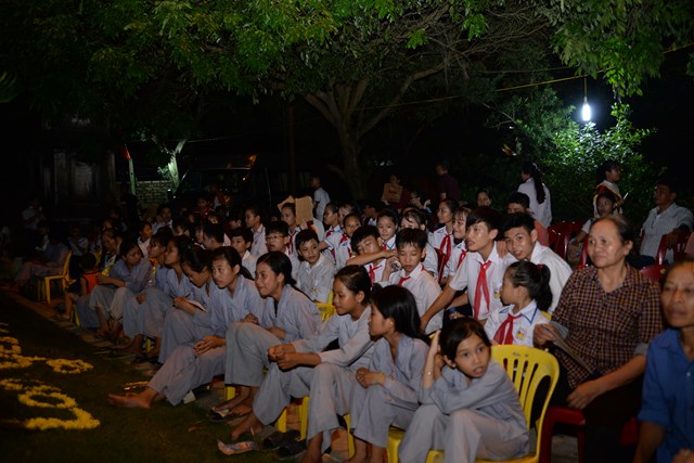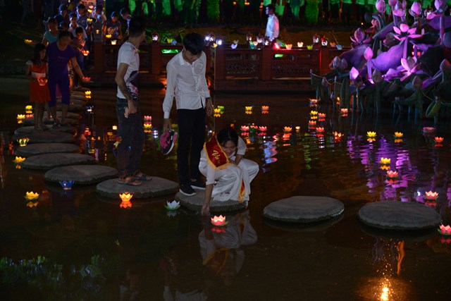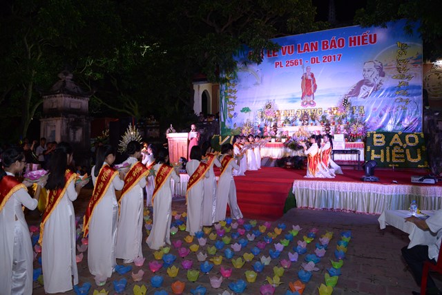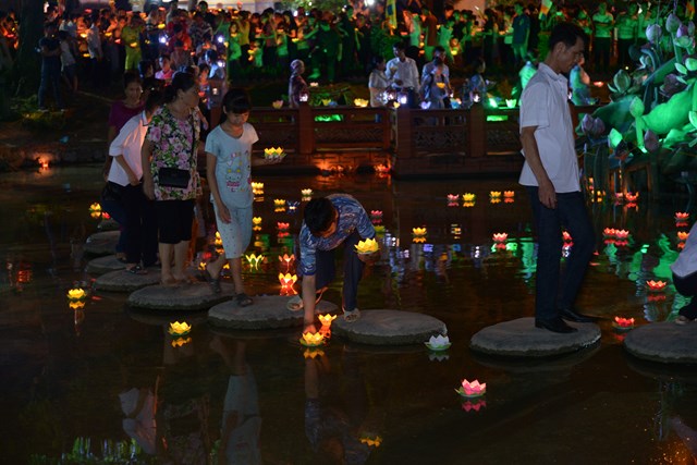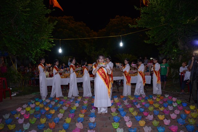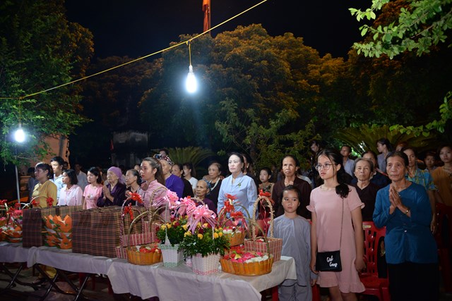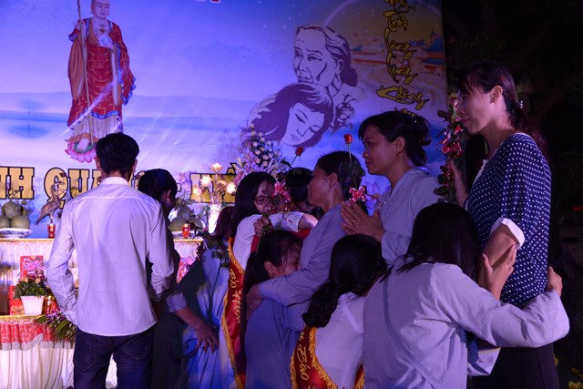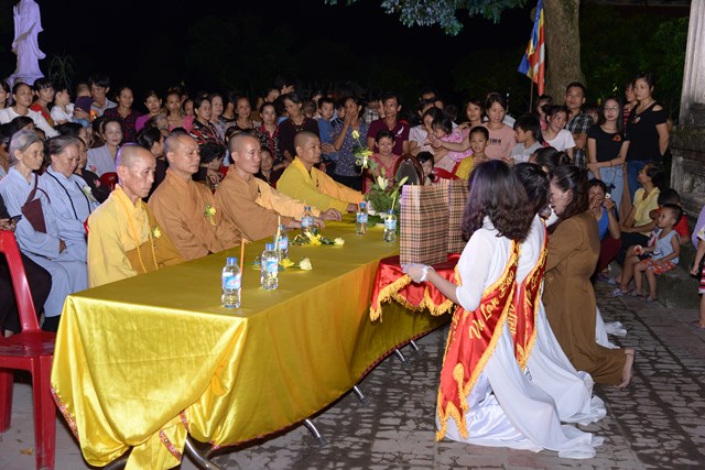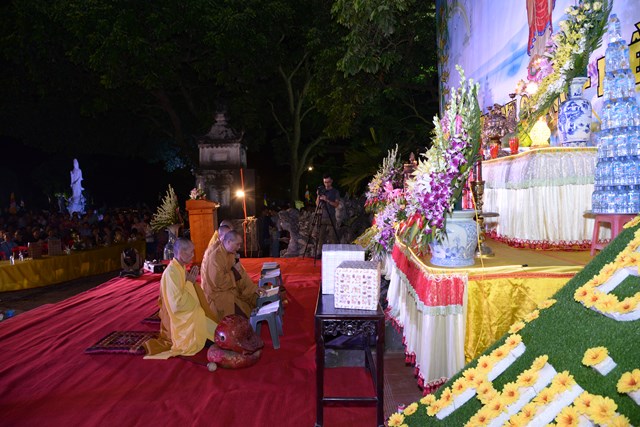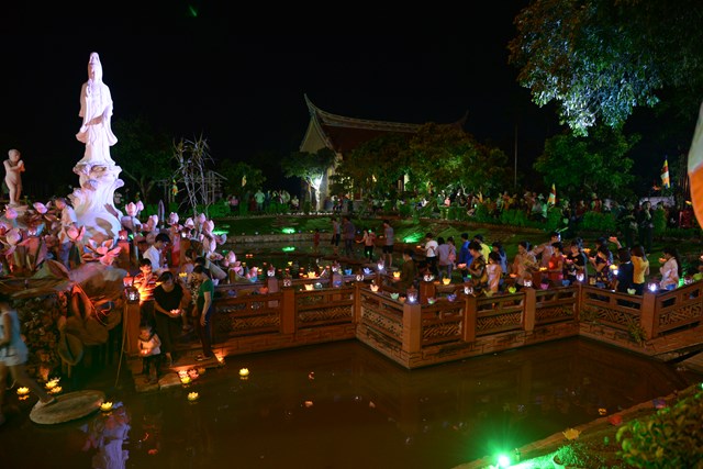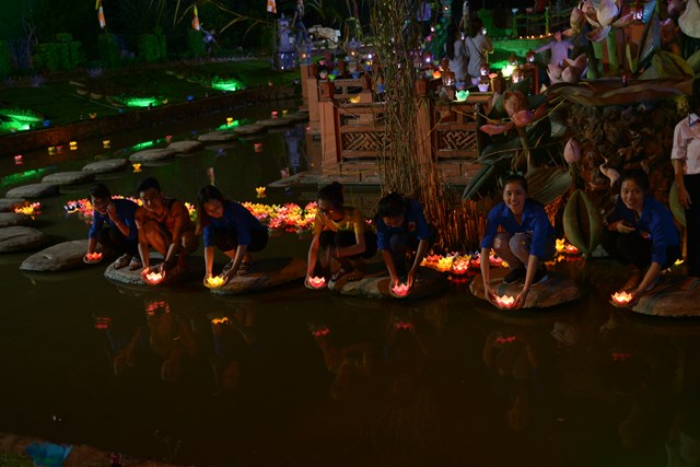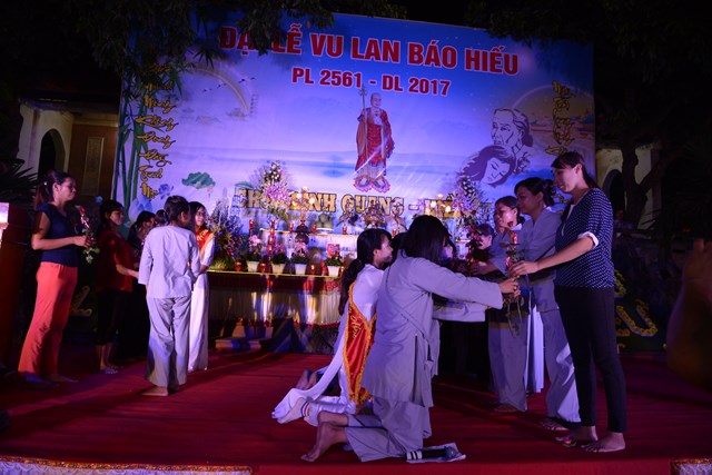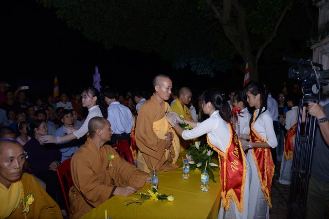 Thời khắc thiêng liêng nhất của buổi lễ đã tới khi toàn thể chư tôn đức tăng xin ngọn lửa của tình thương và sự hiểu biết từ bàn Phật rồi truyền sang cho các bạn thanh thiếu niên Phật tử, quý quan khách, quý Phật tử, những ngọn đèn hoa đăng dần lan tỏa khắp chốn già lam, làm xua tan màn vô minh si ám, những ngọn nến biểu hiện cho tấm lòng thành kính nhất tri ân ông bà, cha mẹ, tri ân các anh hùng liệt sỹ, đồng bào tử nạn đã hy sinh cho độc lập tự do của Đất nước.