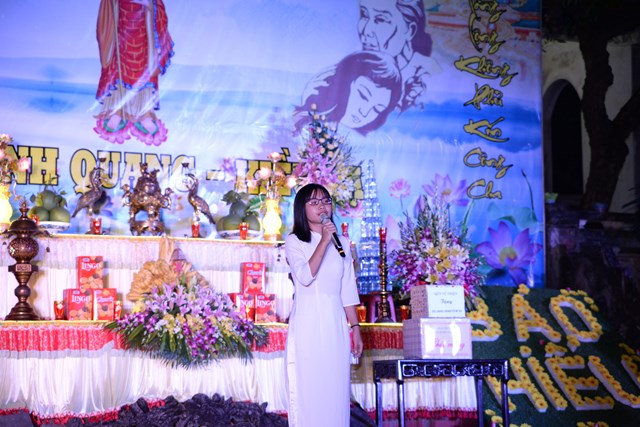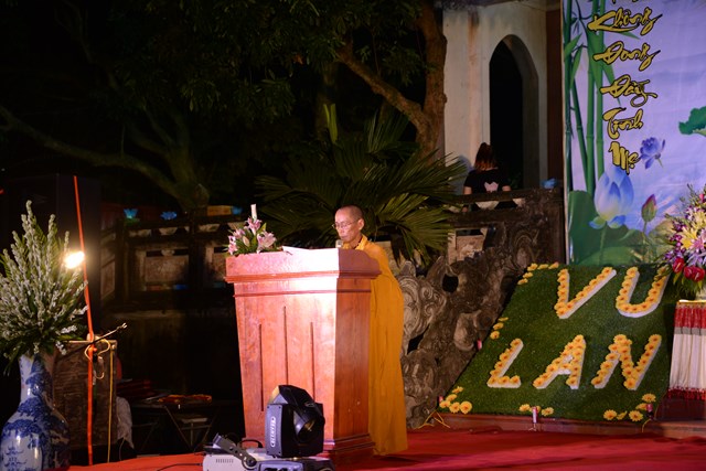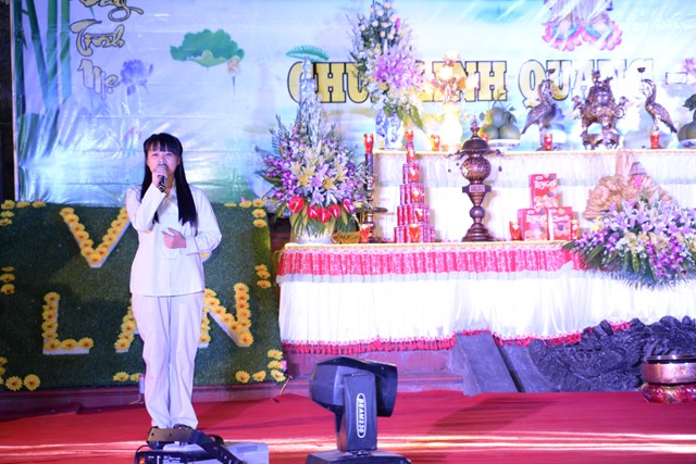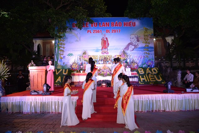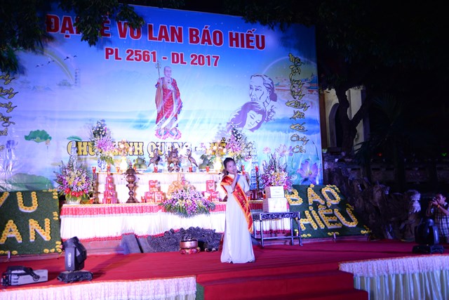 Thay mặt cho các em thanh thiếu niên Phật tử đang học tập, sinh hoạt tại huyện An Dương, Phật tử Tuyết Nhi đã lên tuyên đọc ý nghĩa Vu Lan: “ Vu Lan bồn là ngày lễ báo hiếu vô cùng cao đẹp của Phật giáo nói riêng và là ngày lễ hội báo hiếu nói chung của mọi người con hiếu trên thế gian này. Lễ Vu Lan mang một ý nghĩa thật thiêng liêng cao cả, giúp cho con cái nghĩ nhớ đến công ơn cha mẹ, khơi dậy trong lòng họ một tinh thần báo hiếu đáng quý, đáng trân trọng. Người con Phật nhận thức sâu sắc lời Phật, mùa Vu Lan về càng nỗ lực tinh tấn thực hành hạnh hiếu để báo đáp thâm ân của cha mẹ. Thờ kính cha mẹ đã trở thành một đạo lý sống của dân tộc Việt Nam, đồng thời cũng là đạo lý sống của hàng Phật tử khi khẳng định đạo Phật là đạo hiếu.”