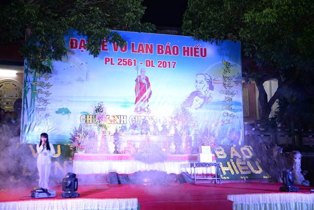 Trước khi chính thức diễn ra buổi lễ, các em thanh thiếu niên Phật tử chùa Linh Quang cùng các Phật tử đang tu học tại chùa đã dâng lời ca, tiếng hát cúng dàng lên chư Phật, chư tôn đức hiện tiền với các ca khúc ca ngợi công sinh thành, dưỡng dục của cha và mẹ, đồng thời kính dâng lên cha mẹ nhân mùa Vu Lan Báo Hiếu.