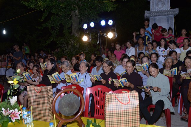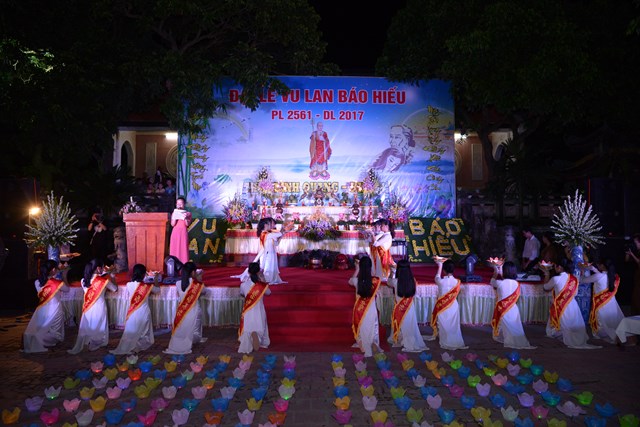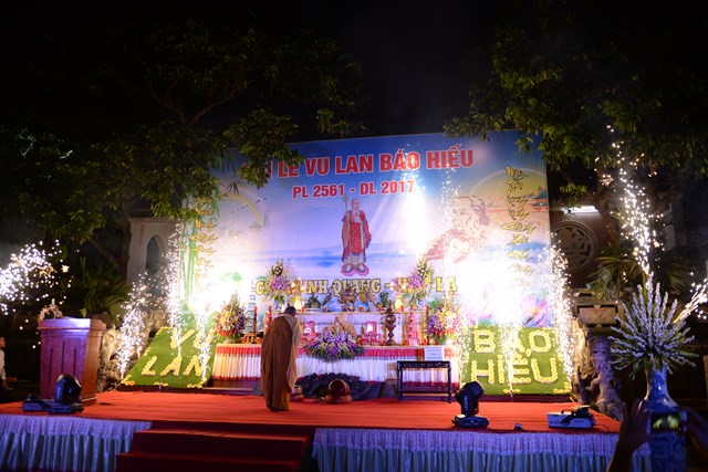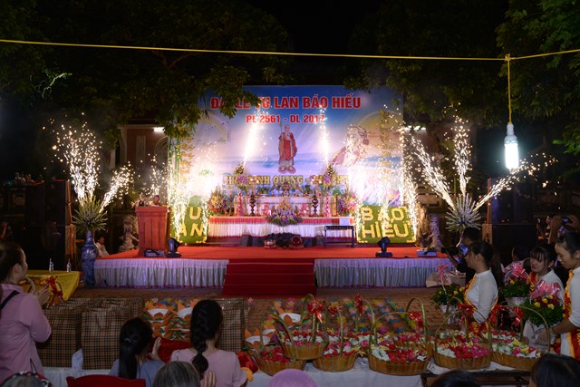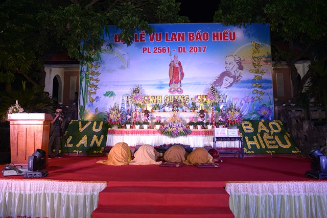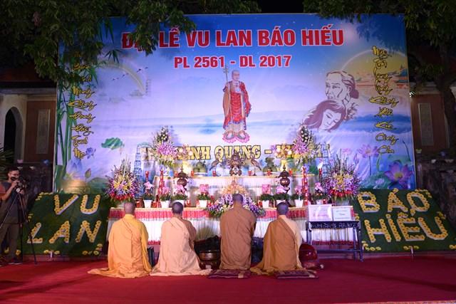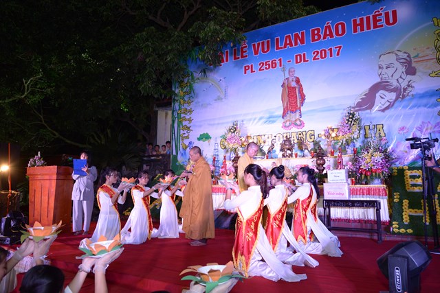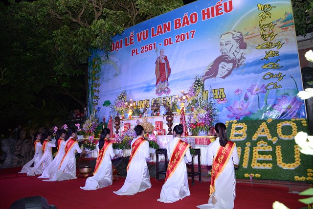 Tiếp đó, Chư tôn đức Tăng Ni, quý Phật tử và đông đảo du khách thập phương gần xa đã cử hành nghi lễ niêm hương bạch Phật và tụng kinh Vu Lan Báo Hiếu nhằm giúp cho các bạn trẻ cũng như các Phật tử và du khách hiểu được công ơn của cha mẹ từ khi mẹ mang thai đến khi chúng ta được trưởng thành, để từ đó có những suy nghĩ và hành động tích cực nhằm báo đáp thâm ân của hai đấng sinh thành.