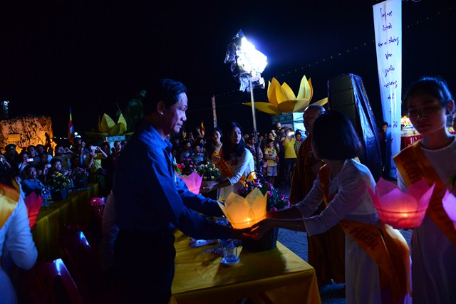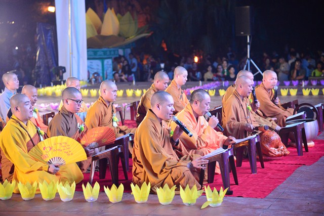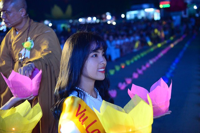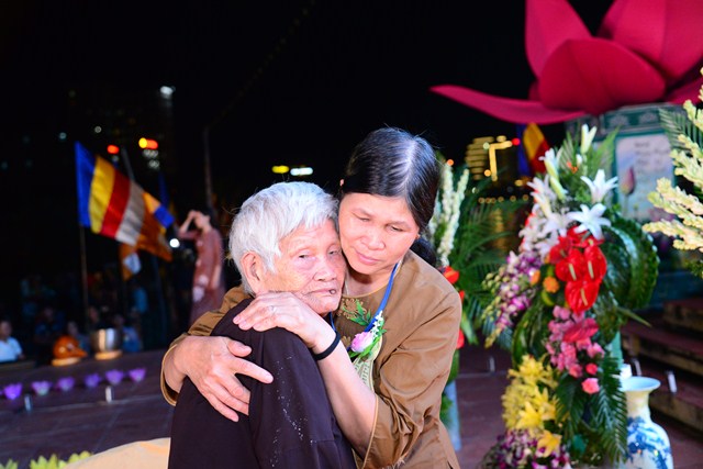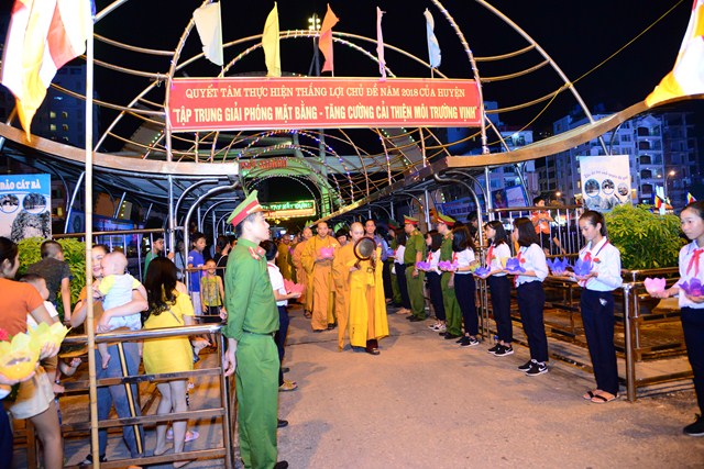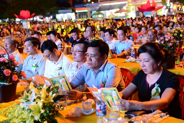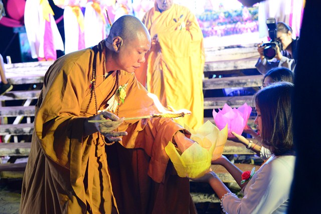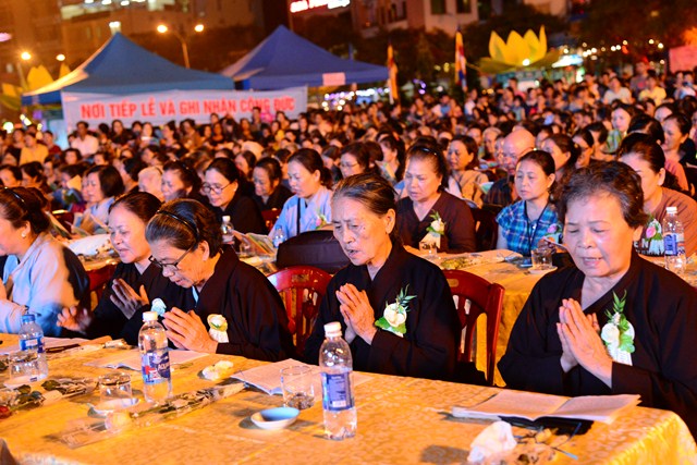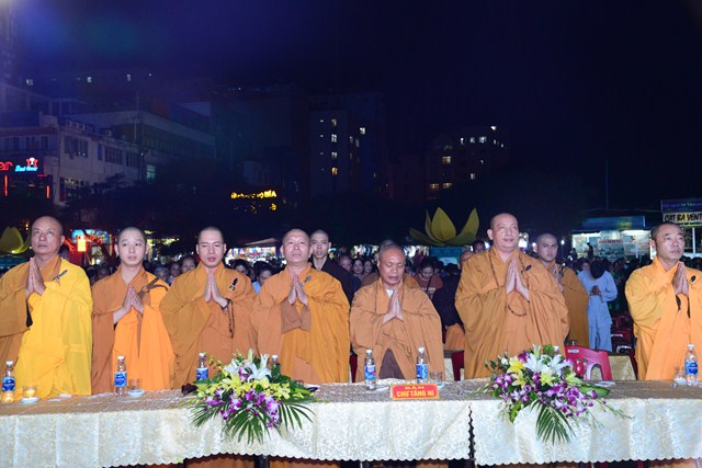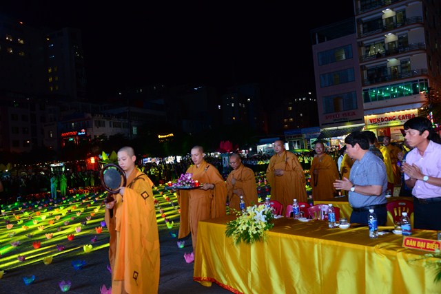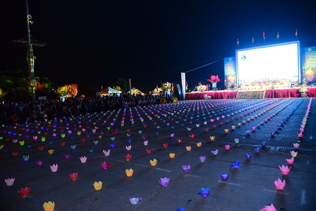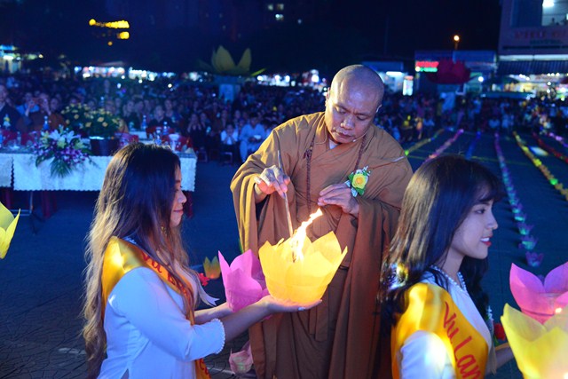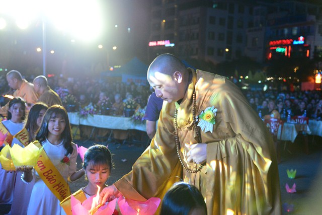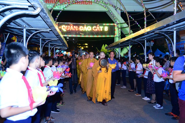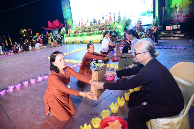 Thời khắc linh thiêng nhất của buổi lễ đã tới khi chư tôn đức chứng minh đón nhận ánh sáng của tình thương và sự hiểu biết từ ban Phật rồi truyền sang cho các bạn thanh thiếu niên, quý quan khách, quý Phật tử, du khách thập phương gần xa. Hơn 10 ngàn ngọn hoa đăng đã được thắp sáng giữa biển đảo thân yêu, làm xua tan đi màn vô minh si ám, tri ân ông bà cha mẹ hiện tiền, ông bà cha mẹ đã quá vãng và tri ân các anh hùng liệt sỹ, đồng bào tử nạn đã hy sinh cho độc lập tự do của Đất nước. Hơn 10 ngàn ngọn nến lung linh, huyền ảo đó đã được chư tôn thiền đức tăng ni, quý Phật tử, quý quan khách và khách du lịch thả xuống biển đảo Cát Bà, mang theo đó là tình yêu thương của con cái đối với ông bà cha mẹ và lời cầu nguyện cho ông bà cha mẹ hiện tiền được phúc thọ tăng long, ông bà cha mẹ đã quá vãng, cũng như các anh hùng liệt sỹ, chiến sỹ trận vong, đồng bào tử nạn sớm được siêu sinh về miền Cực Lạc.