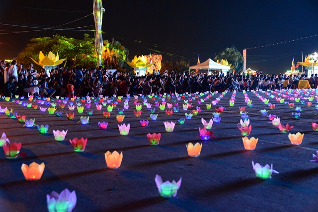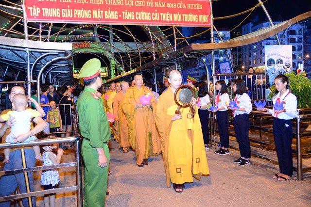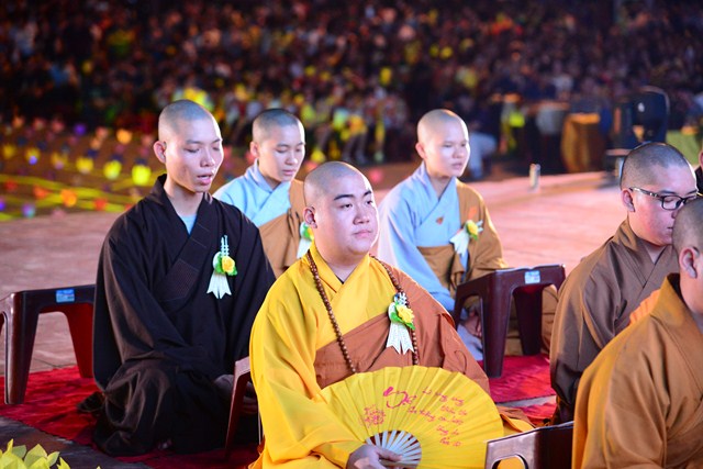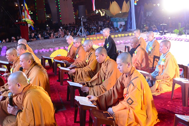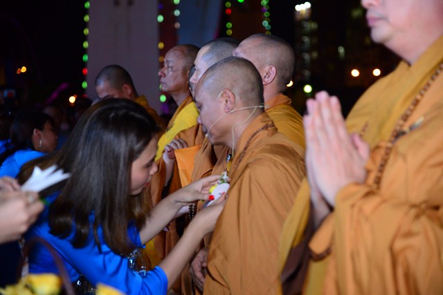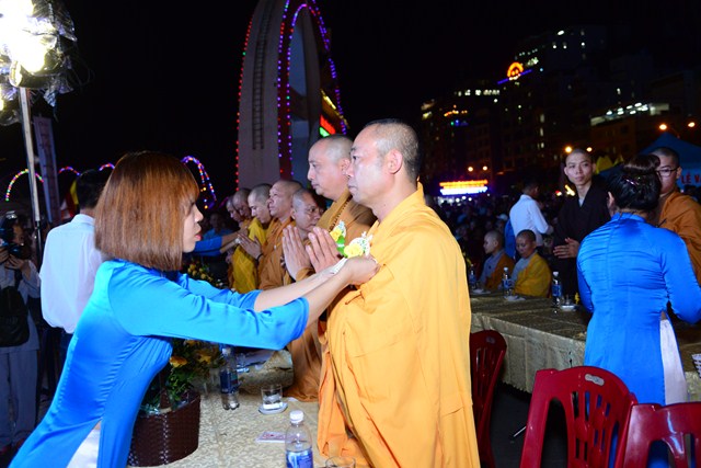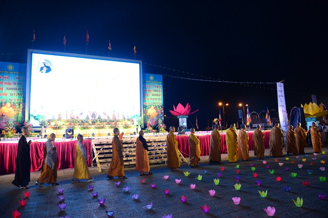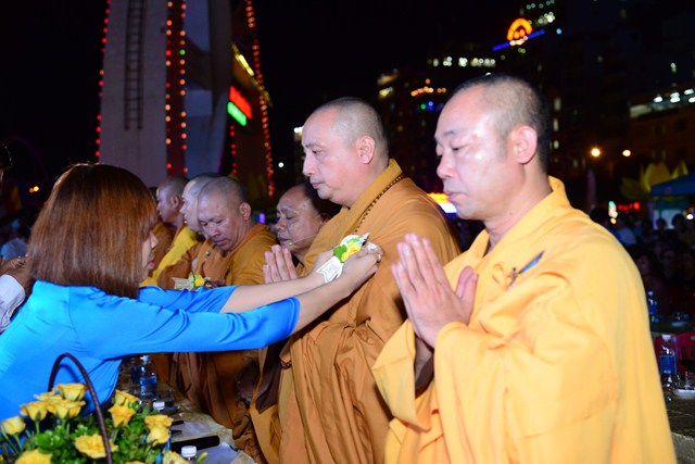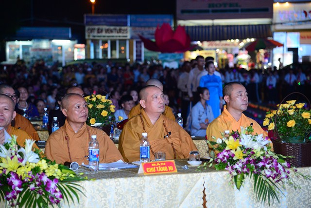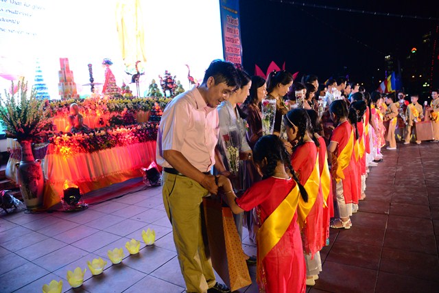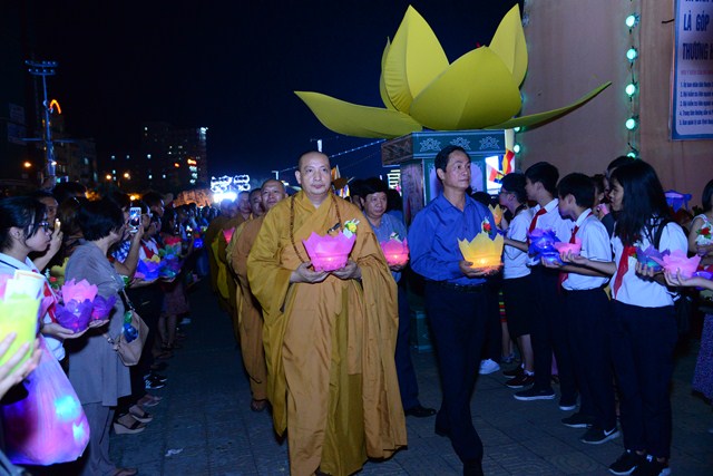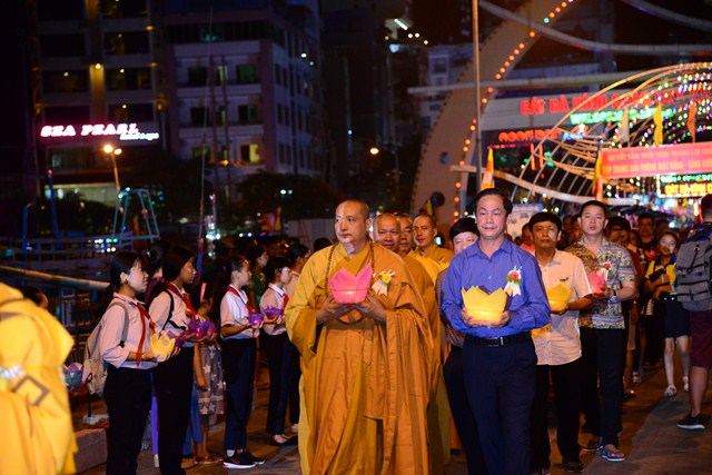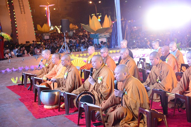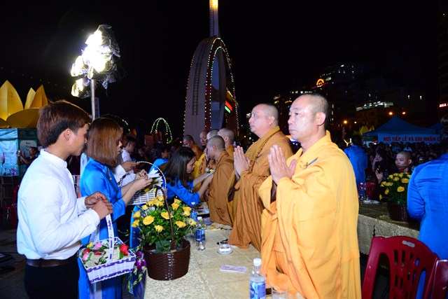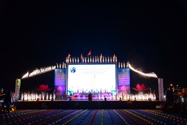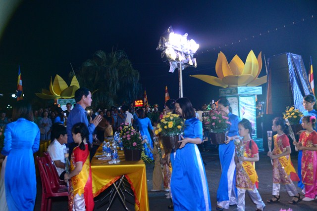 Thời khắc linh thiêng nhất của buổi lễ đã tới khi chư tôn đức chứng minh đón nhận ánh sáng của tình thương và sự hiểu biết từ ban Phật rồi truyền sang cho các bạn thanh thiếu niên, quý quan khách, quý Phật tử, du khách thập phương gần xa. Hơn 10 ngàn ngọn hoa đăng đã được thắp sáng giữa biển đảo thân yêu, làm xua tan đi màn vô minh si ám, tri ân ông bà cha mẹ hiện tiền, ông bà cha mẹ đã quá vãng và tri ân các anh hùng liệt sỹ, đồng bào tử nạn đã hy sinh cho độc lập tự do của Đất nước. Hơn 10 ngàn ngọn nến lung linh, huyền ảo đó đã được chư tôn thiền đức tăng ni, quý Phật tử, quý quan khách và khách du lịch thả xuống biển đảo Cát Bà, mang theo đó là tình yêu thương của con cái đối với ông bà cha mẹ và lời cầu nguyện cho ông bà cha mẹ hiện tiền được phúc thọ tăng long, ông bà cha mẹ đã quá vãng, cũng như các anh hùng liệt sỹ, chiến sỹ trận vong, đồng bào tử nạn sớm được siêu sinh về miền Cực Lạc.