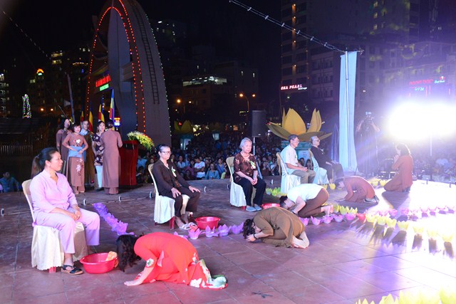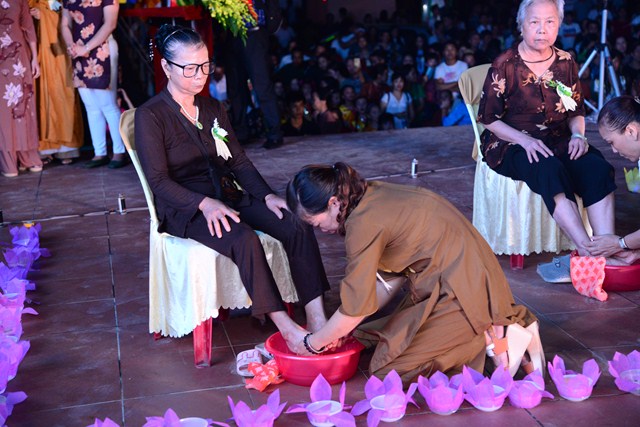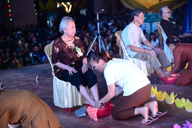 Xúc động lễ rửa chân Tri ân cha mẹ nhân mùa Vu Lan Báo Hiếu