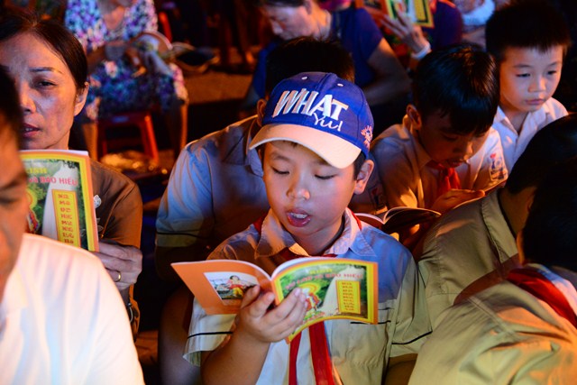 Các cháu học sinh cũng tham dự buổi lễ tụng kinh cầu nguyện