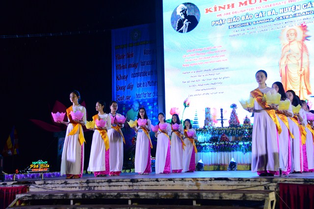 Nhân dịp này, thực hiện theo phương châm của GHPGVN đề ra: “ Phật Giáo luôn đồng hành cùng Dân tộc”, cũng như trên tinh thần Từ Bi – Cứu Khổ – Ban Vui của nhà Phật, thay mặt cho BTS GHPGVN thị trấn Cát Bà, thay mặt cho các nhà hảo tâm, các mạnh thường quân, Thượng tọa Thích Tục Khang – Trưởng BTC đại lễ, trụ trì chùa Linh Quang thị trấn Cát Bà đã trao số tiền 100 triệu đồng ủng hộ cho các cháu học sinh nghèo vượt khó, có hoàn cảnh khó khăn đang học tập và sinh hoạt tại thị trấn Cát Bà, huyện Cát Hải, thành phố Hải Phòng.