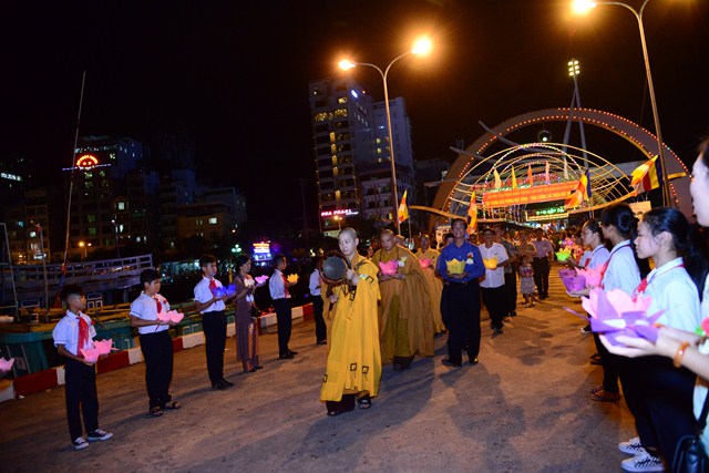 Chư tôn đức tăng ni và Phật tử tiến về cảng Cát Bà thà hoa đăng