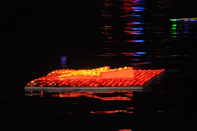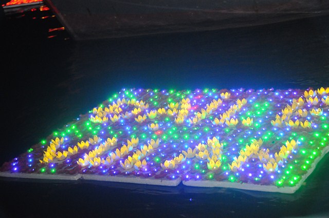 Hoa đăng kết bè thành hình lá cờ Tổ Quốc