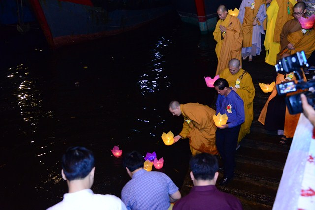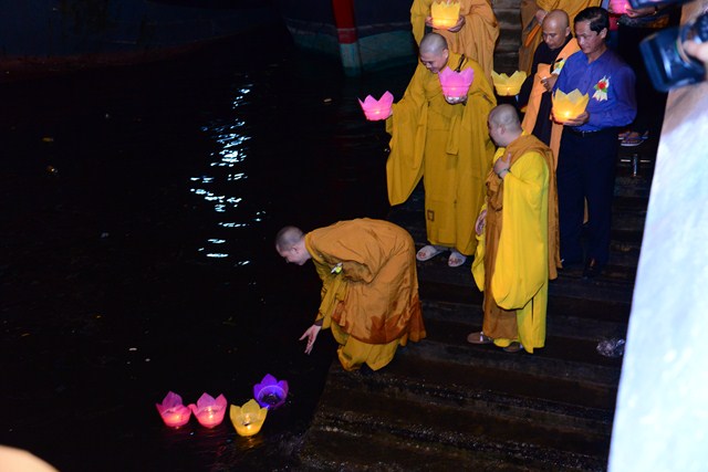 Chư tôn đức tăng ni và chính quyền thả hoa đăng cầu nguyện