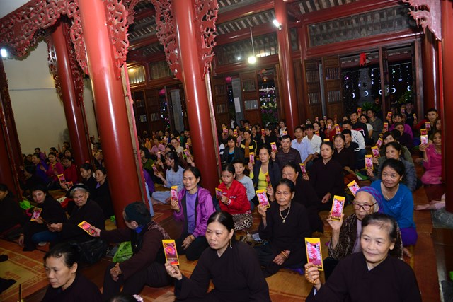 Sau gần ba giờ đồng hồ, các Phật tử, các thiện nam, tín nữ đã dốc một lòng dâng nén tâm hương thành kính nhất lên Bồ Tát Quán Thế Âm nhân dịp đầu xuân mới, cầu nguyện thế giới hòa bình, chúng sinh an lạc, nhà nhà được ấm no, hạnh phúc.
