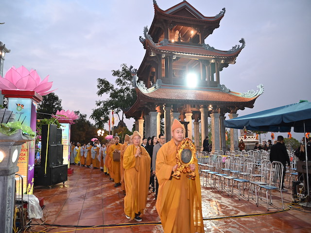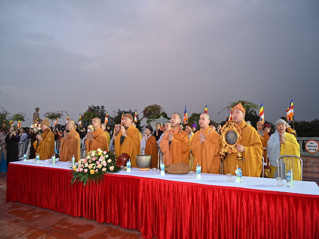 Tại buổi lễ, Chư tôn đức cùng đại biểu và toàn thể đại chúng đã thành kính dâng hương, bạch Phật, cầu nguyện Thế giới hòa bình, nhân dân an lạc, Phật pháp xương minh. Tiếp đó, Hòa thượng Thích Thanh Giác đã xin ánh sáng của từ bi và trí tuệ từ bàn Phật trước tôn tượng đức Từ phụ A Di Đà trang nghiêm, rồi truyền sang cho Chư tôn đức Tăng Ni, quý vị quan khách và quý Phật tử, làm xua tan màn vô minh si ám và cái lạnh của mùa đông giá rét miền Bắc.