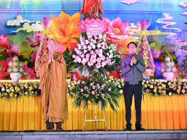 Quang lâm và chứng minh buổi lễ có sự hiện diện của HT. Thích Thanh Giác – Phó trưởng ban Thường trực BTS GHPGVN Tp. Hải Phòng, trụ trì chùa Long Hoa, trưởng BTC đại lễ; Đại đức Thích Bản Điền – Uỷ viên thường trực, phó Chánh văn phòng BTS GHPGVN thành phố Hải Phòng, trưởng Ban trị sự GHPGVN huyện An Lão, cùng đông đảo chư tôn thiền đức Tăng Ni ủy viên BTS GHPGVN huyện An Lão, chư tôn đức Tăng Ni trụ trì các chùa nội, ngoại thành của thành phố Hải Phòng.