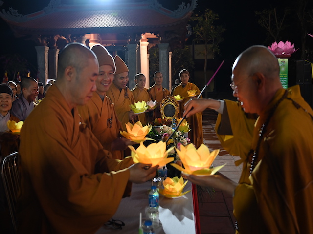 Toàn thể đại chúng cầm ngọn nến trên tay, mang theo ánh sáng của tình thương và sự hiểu biêt với lòng tôn kính sâu sắc nhất nghĩ nhớ tới công lao của Đức Phật A Di Đà, ngọn nến lung linh huyền ảo đã dần dần được lan tỏa khắp khuôn viên chùa, làm ấm lại tâm hồn của mỗi người con Phật, cũng như không gian của đêm hội. Với ánh sáng biểu tượng của lòng từ bi và trí tuệ ấy, quý Phật tử lại một lần nữa cảm nhận được tình thương của đức Từ phụ A Di Đà đã dành cho nhân loại.