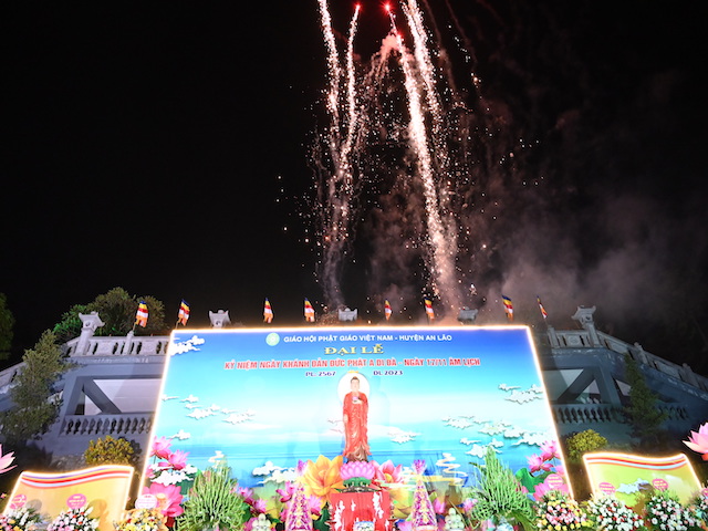 Kết thúc buổi lễ là màn bắn pháo hoa kéo dài 10 phút kính mừng ngày khánh đản của đức Phật A Di Đà hòa chung với niềm hoan hỷ của mỗi người con Phật khắp năm châu.