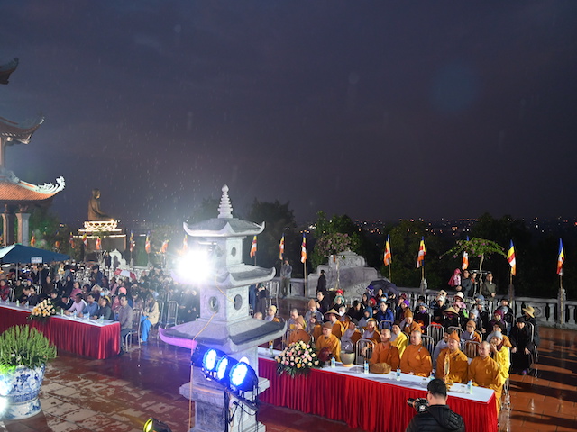 Tại buổi lễ, Chư tôn đức cùng đại biểu và toàn thể đại chúng đã thành kính dâng hương, bạch Phật, cầu nguyện Thế giới hòa bình, nhân dân an lạc, Phật pháp xương minh. Tiếp đó, Hòa thượng Thích Thanh Giác đã xin ánh sáng của từ bi và trí tuệ từ bàn Phật trước tôn tượng đức Từ phụ A Di Đà trang nghiêm, rồi truyền sang cho Chư tôn đức Tăng Ni, quý vị quan khách và quý Phật tử, làm xua tan màn vô minh si ám và cái lạnh của mùa đông giá rét miền Bắc.