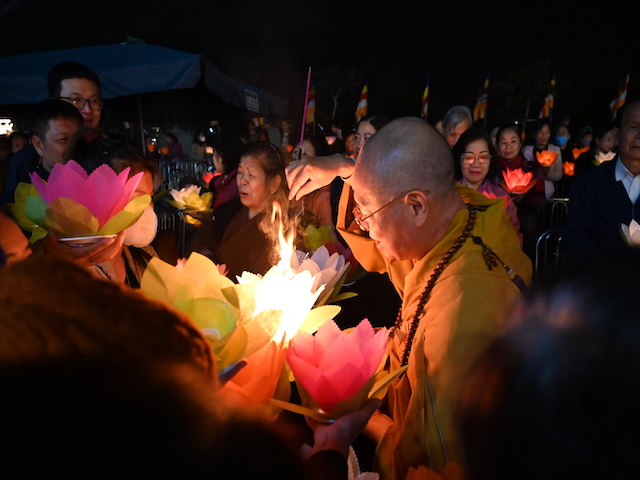 Toàn thể đại chúng cầm ngọn nến trên tay, mang theo ánh sáng của tình thương và sự hiểu biêt với lòng tôn kính sâu sắc nhất nghĩ nhớ tới công lao của Đức Phật A Di Đà, ngọn nến lung linh huyền ảo đã dần dần được lan tỏa khắp khuôn viên chùa, làm ấm lại tâm hồn của mỗi người con Phật, cũng như không gian của đêm hội. Với ánh sáng biểu tượng của lòng từ bi và trí tuệ ấy, quý Phật tử lại một lần nữa cảm nhận được tình thương của đức Từ phụ A Di Đà đã dành cho nhân loại.
