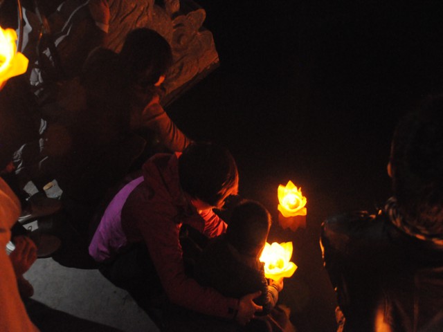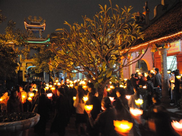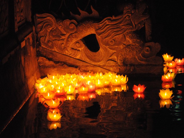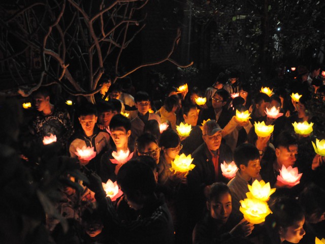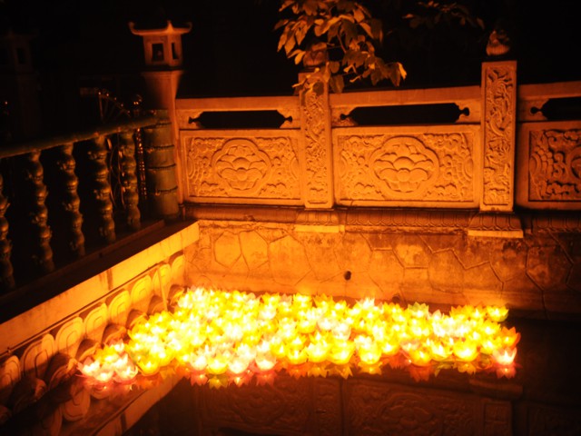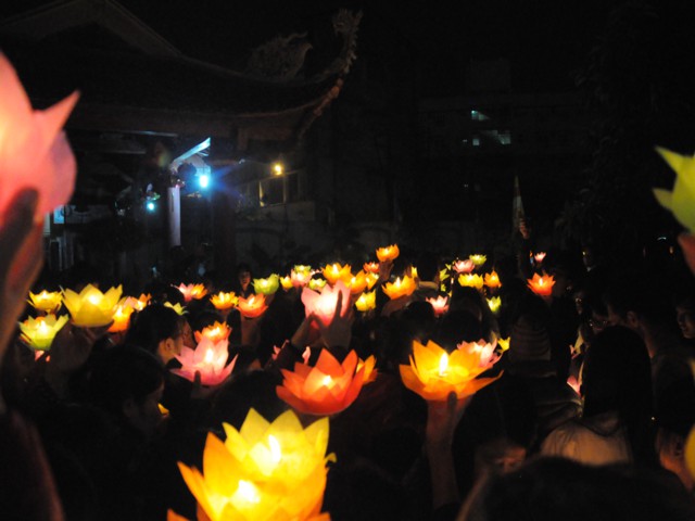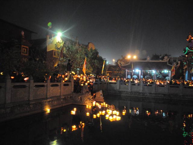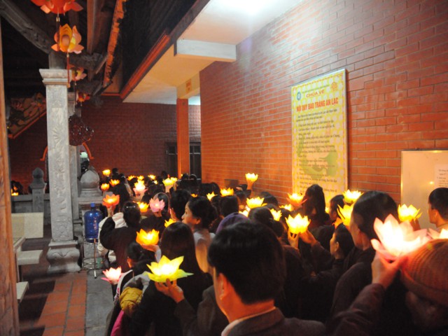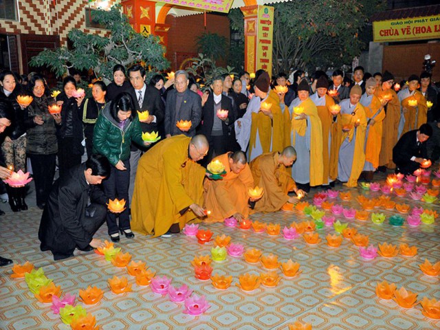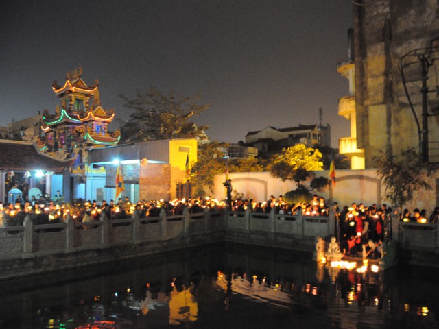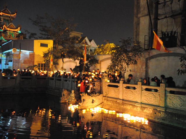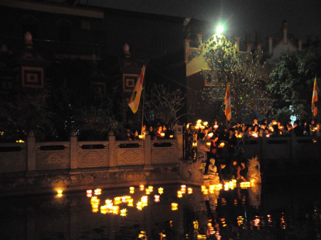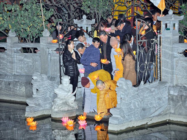 Đêm hoa đăng dần dần được khép lại với nghi lễ phóng đăng tại lầu Quan Âm trong khuôn viên chùa với không khí trang nghiêm, thành kính, những ngọn đèn hoa đăng được thả xuống lòng hồ mang theo đó những niềm tin, những ước vọng về một tương lai tươi sáng, về một thế giới không còn chiến tranh, không còn khổ đau, người người, nhà nhà được ấm no hạnh phúc được ánh sáng của Phật Pháp soi đường, sống trong ánh hào quang của mười phương Chư Phật.