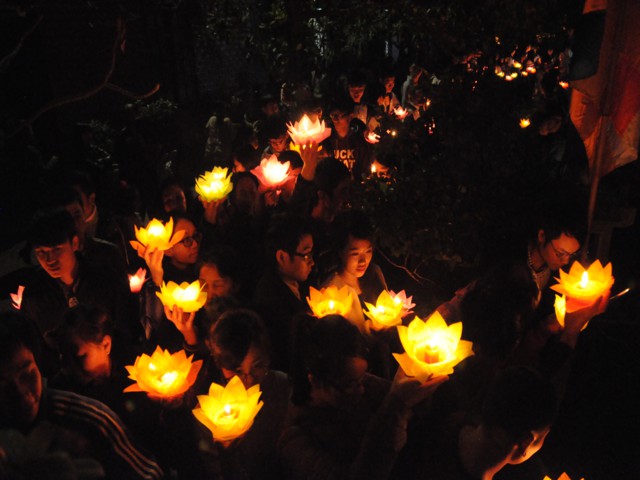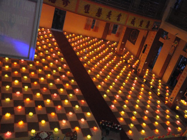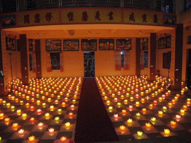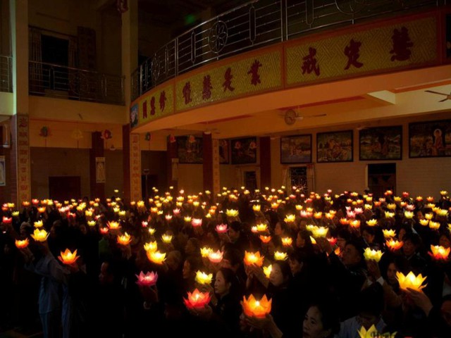 Ánh sáng của lòng từ bi và trí tuệ dần dần được lan tỏa khắp đạo tràng, cầm ngọn đèn hoa đăng trên tay, chúng ta thầm hiểu ra một điều rằng: Sống trên cõi đời này, đêm tối vô minh còn dài lắm, nỗi thống khổ và những hệ lụy trần gian vẫn còn nhiều vô kể. Trong khi đó, tất cả chúng ta vẫn đang là những kẻ lạc lõng, bơ vơ, ngụp lặn, trôi lăn trong sáu nẻo của sinh tử luân hồi nhưng nhờ có ánh sáng từ bi, ánh sáng trí tuệ và lòng từ mẫn của Ngài đã soi đường cho chúng ta để chúng ta định hướng được đường về, biết có Tam Bảo mà nương tựa và biết được nơi mà mình cần phải cố gắng tu học, trau dồi thân tâm để được sinh về cõi nước đó mà ở đó sẽ không còn khổ đau, không còn sinh tử luân hồi. Ánh sáng đó đã xua tan đi màn đêm vô minh, tối tăm của cuộc đời, soi rọi khắp nhân gian để con người trở về với cái Chân – Thiện – Mỹ, trở về với Phật tính vốn có của mình mà lâu nay đã bị màn đêm vô minh che lấp.