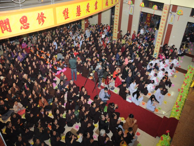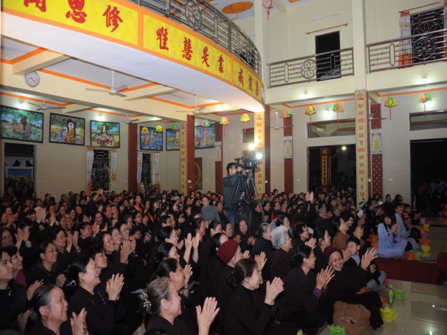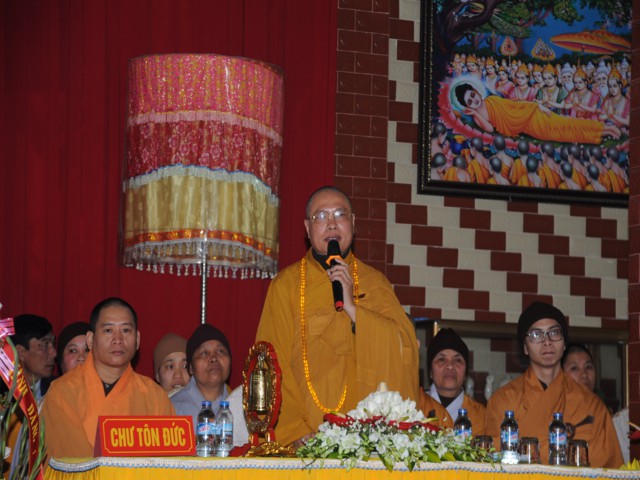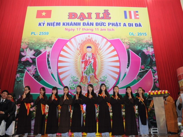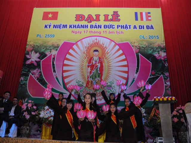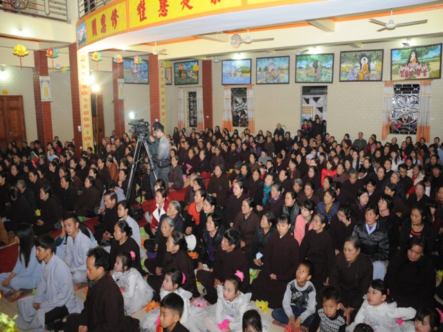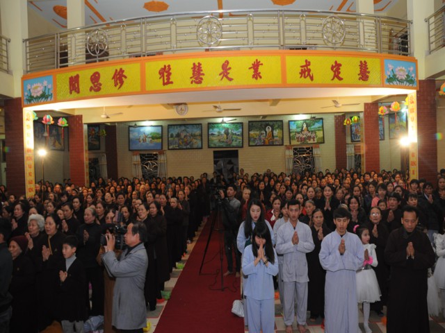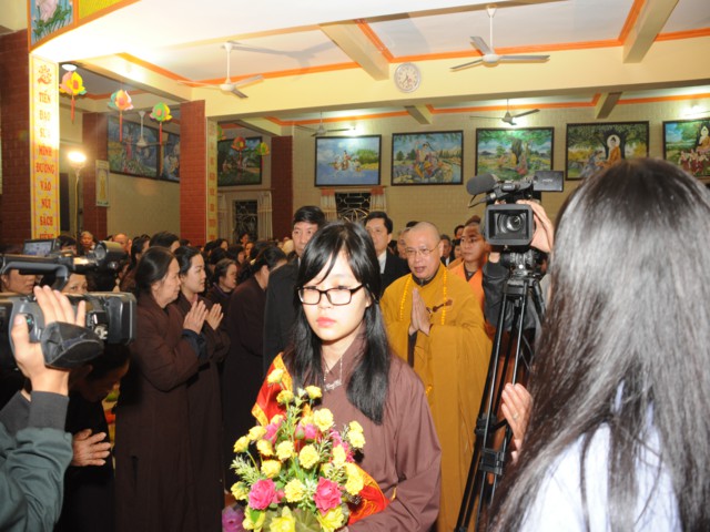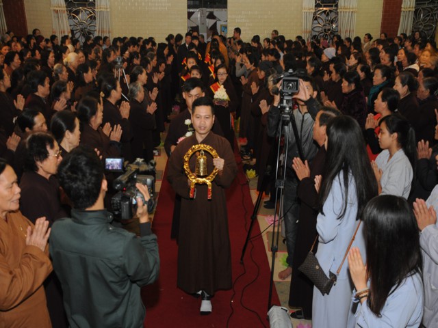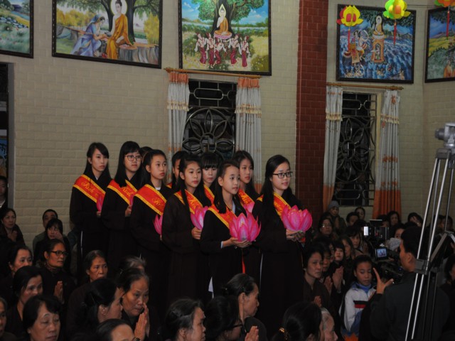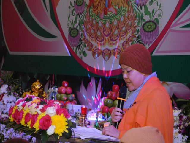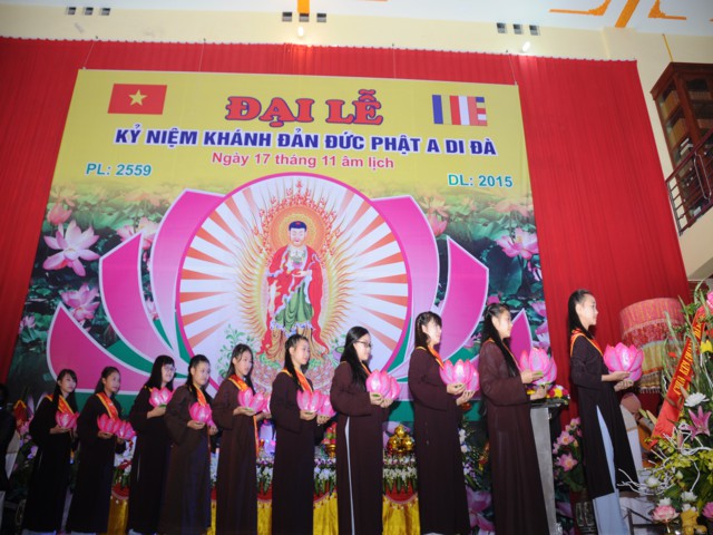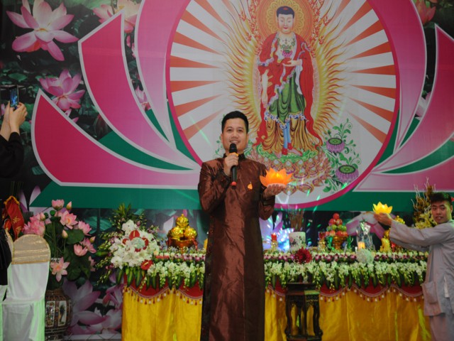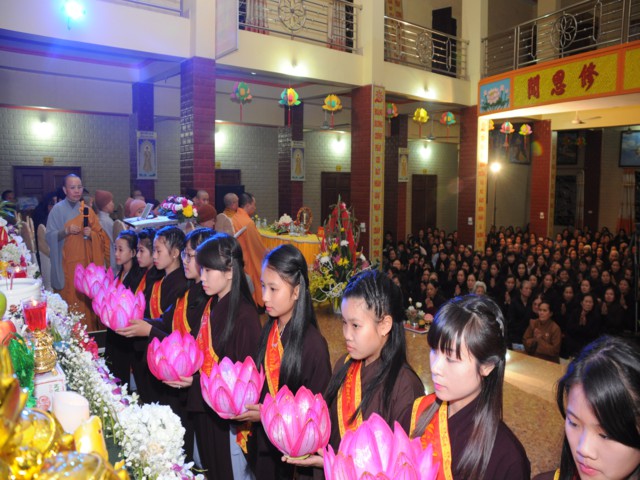 Sau khi làm lễ dâng hương, chú nguyện, TT. Thích Thanh Giác đã lấy ngọn lửa thiêng từ bàn Phật thắp sáng ngọn đèn hoa đăng của lòng từ bi và trí tuệ rồi truyền sang cho Chư tôn thiền đức Tăng ni, quý vị quan khách, quý thiện nam, tín nữ, các em thanh thiếu niên Phật tử cùng các hành giả đang tu học theo pháp môn Tịnh Độ.