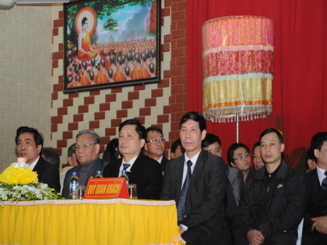 Về phía lãnh đạo chính quyền có sự hiện diện của ông: Lê Văn Nhã – Phó giám đốc Sở nội vụ, trưởng Ban tôn giáo Tp. Hải Phòng, ông: Nguyễn Ngọc Phương – Trưởng ban phong trào MTTQ VN Tp. Hải Phòng, ông: Phạm Văn Thảo – Trưởng phòng an ninh xã hội, công an Tp. Hải Phòng, ông: Phạm Chí Bắc – Phó chủ tịch UBND quận Hải An, ông: Đỗ Văn Thuấn – Chủ tịch UBND phường Đông Hải 1, các ông bà lãnh đạo các phòng ban cấp Đảng ủy, UBND, HĐND, UBMTTQ quận Hải An, phường Đông Hải 1, các cơ quan, ban ngành đoàn thể trên địa bàn quận Hải An, về phía tôn giáo bạn có sự hiện diện của: Linh mục Vũ Văn Kiện, các em thanh thiếu niên Phật tử, học sinh trưởng PTTH Thái Phiên, cùng hàng ngàn Phật tử về tham dự Đêm hoa đăng mừng khánh đản đức từ phụ A Di Đà.