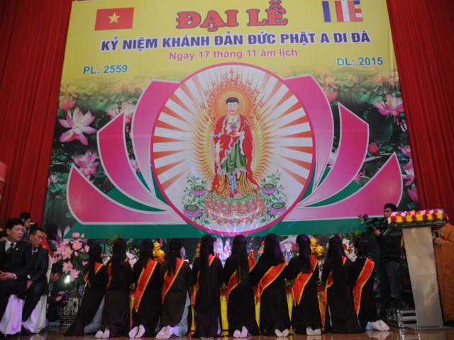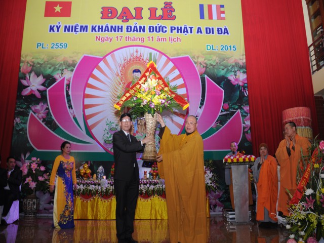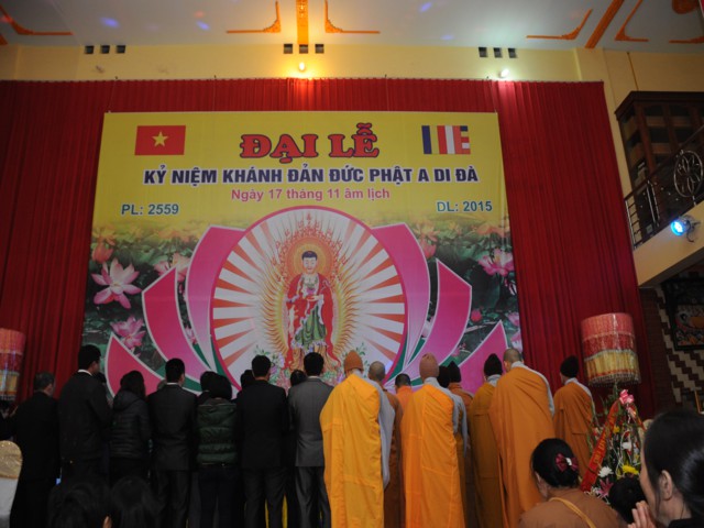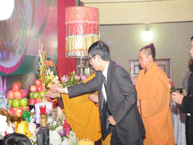 Giờ phút linh thiêng nhất của buổi lễ đã đến, Chư tôn đức Tăng Ni, các cấp chính quyền đã đối trước tôn ảnh của đức Phật A Di Đà, cử hành nghi lễ dâng hương, bạch Phật, lễ chú nguyện, cầu nguyện cho âm siêu, dương thái, cầu nguyện cho thế giới được hòa bình, chúng sinh an lạc.