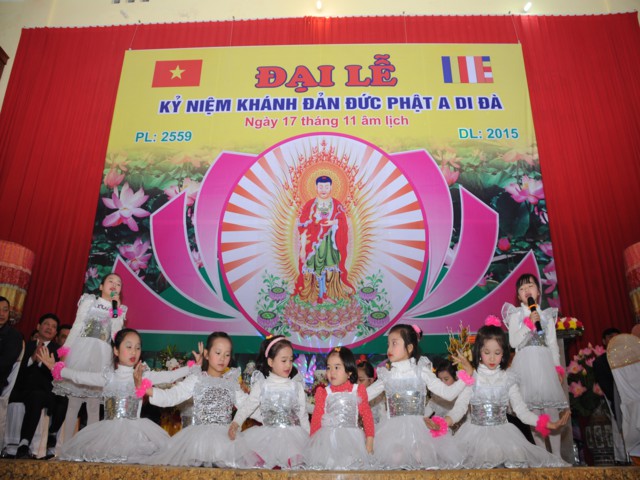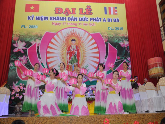 Trước khi chương trình thắp đèn hoa đăng kỷ niệm khánh đản Đức Phật A Di Đà được chính thức bắt đầu là các tiết mục văn nghệ do các Phật tử thuộc đạo tràng An Lạc và các em thanh thiếu niên lớp giáo lý của chùa Vẽ trình bày với các ca khúc ca ngợi công hạnh của đức từ phụ A Di Đà ca ngợi tình yêu quê hương Đất nước, ca ngợi công sinh thành dưỡng dục của các bậc sinh thành.