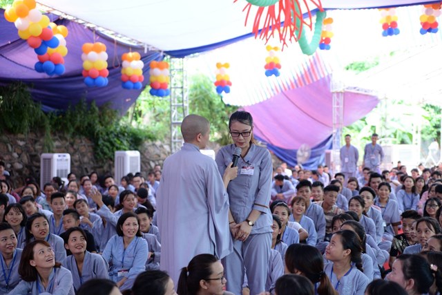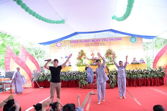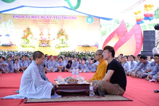 Đặc biệt trước khi kết thúc khóa tu “ Một ngày yêu thương” lần thứ VI năm 2017, các bạn khóa sinh đã được tham gia chương trình talk show mang tên: “ Xóa bỏ quá khứ”, tại buổi talk show này, các bạn trẻ đã thẳng thắn bày tỏ tâm tư, nguyện vọng, bày tỏ suy nghĩ của mình về những vấn đề chưa thể giải quyết được trong cuộc sống, cũng như những mẩu chuyện rất cảm động về gia đình, về tỉnh cảm của con cái đối với cha mẹ và những người xung quanh. Qua những lời chia sẻ chân thành này, các sư thầy, sư cô trong BTC khóa tu đã gỡ bỏ dần những vướng mắc của các bạn mà các bạn đã gặp phải trong cuộc sống, giúp các bạn xóa bỏ những điều tiêu cực, những mặc cảm trong cuộc sống nhằm hướng đến một tương lai “ khỏe mạnh”, đồng thời thực hành lời Phật dạy để có một cuộc sống an lạc, không còn phiền não.