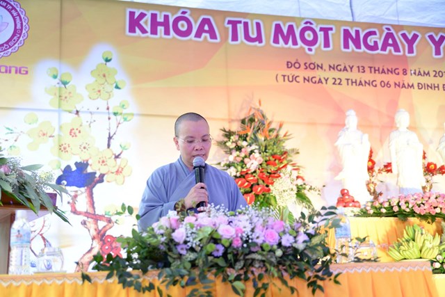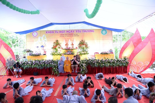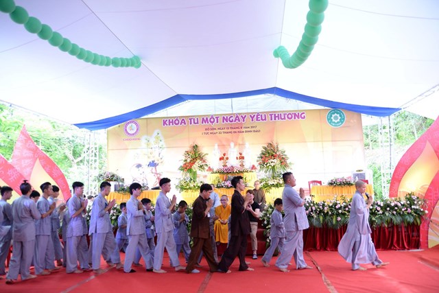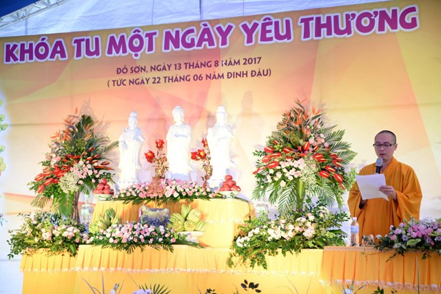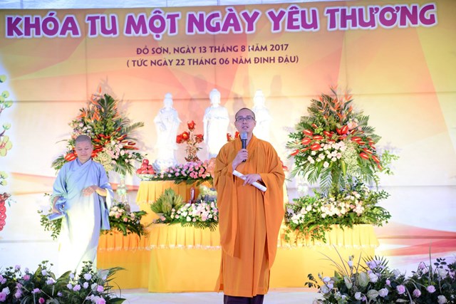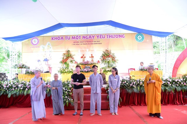 Quang lâm chứng minh buổi lễ có Đại Đức Thích Giác Hiệu – Ủy viên ban hoằng pháp GHPGVN thành phố Hải Phòng, trưởng BTC khóa tu “Một ngày yêu thương”, đương gia chùa Hang – Đồ Sơn; Sư thầy: Thích Giới Định – Ủy viên BTS GHPGVN thành phố Hải Phòng, Sư cô: Thích Diệu Tấn – Chủ nhiệm khóa tu, cùng đông đảo chư tôn đức Tăng Ni nội ngoại thành của thành phố Hải Phòng cũng quang lâm về tham dự buổi lễ.