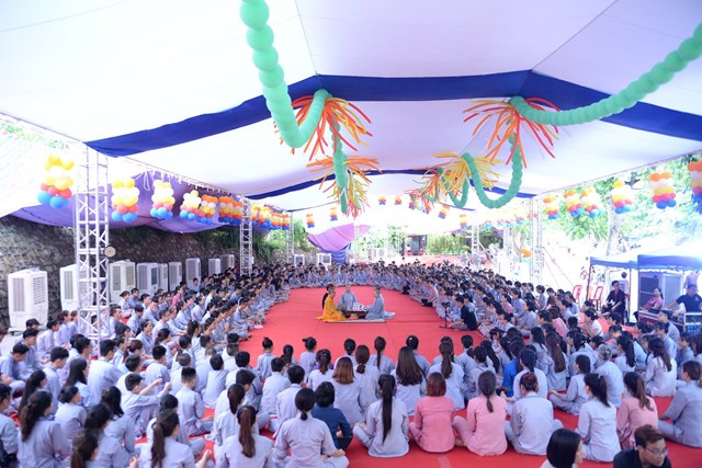 Buổi chiều cùng ngày, hơn 1000 khóa sinh đã được giao lưu văn nghệ cùng ca nhạc sỹ Sỹ Luân đến từ thành phố Hồ Chí Minh với những ca khúc mang âm hưởng Phật giáo và các ca khúc ca ngợi công ơn của cha và mẹ. Ngoài ra vào giữa giờ giải lao, các em còn được chơi trò chơi, giao lưu cùng quý sư thầy, sư cô, giao lưu giữa các khóa sinh và đi kinh hành niệm Phật quanh bờ biển khu I, Đồ Sơn trong một không gian linh thiêng, không khí trong lành.