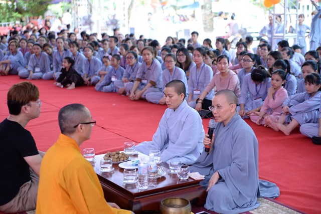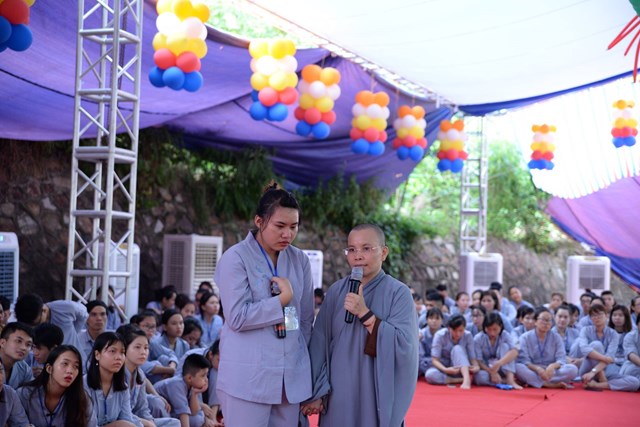 Khóa lễ tụng kinh Vu Lan vừa kết thúc, cũng là lúc các bạn trẻ được lắng đọng tâm tư đón nghe một thời pháp thoại rất ý nghĩa và xúc động do sư thầy Thích Giới Định thuyết giảng. Thời pháp tuy ngắn nhưng đã để lại rất nhiều ấn tượng, chạm đến trái tim của các bạn trẻ, khiến cho các bạn không thể ngăn nổi dòng nước mắt thông qua những câu chuyện cảm động về tình mẫu tử thiêng liêng, giản dị, mộc mạc nhưng lại rất thực tế. Khi nghe xong những câu chuyện ngắn này, các em dường như cảm thấy mình có lỗi với ba mẹ rất nhiều, những giọt nước mắt hối hận, ăn năn đã lăn dài trên má. Chắc hẳn sau khi khóa tu này kết thúc, khi về nhà, các bạn sẽ thay đổi tư duy, thay đổi suy nghĩa và sẽ có những hành động tích cực hơn nhằm báo đáp thâm ân trời biển của 2 đấng sinh thành.