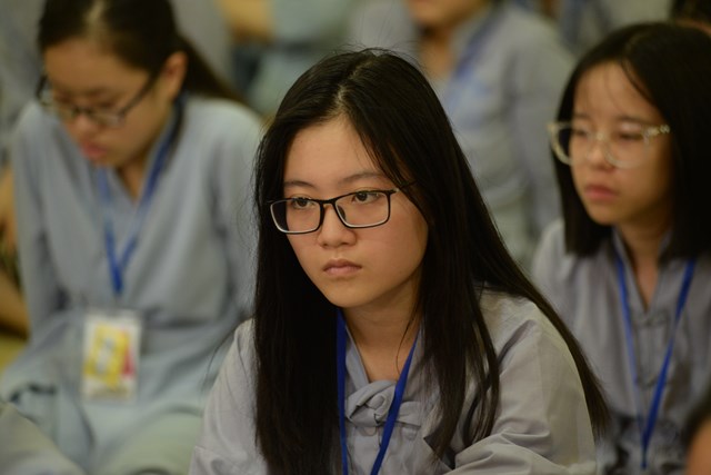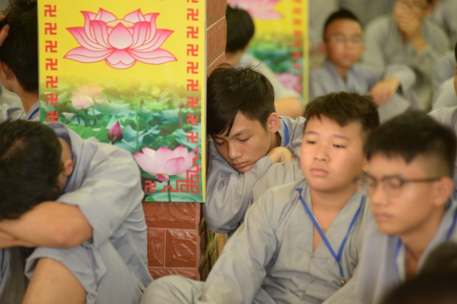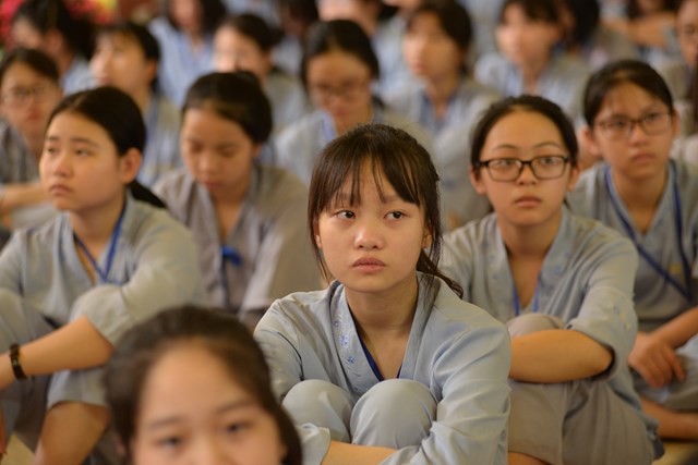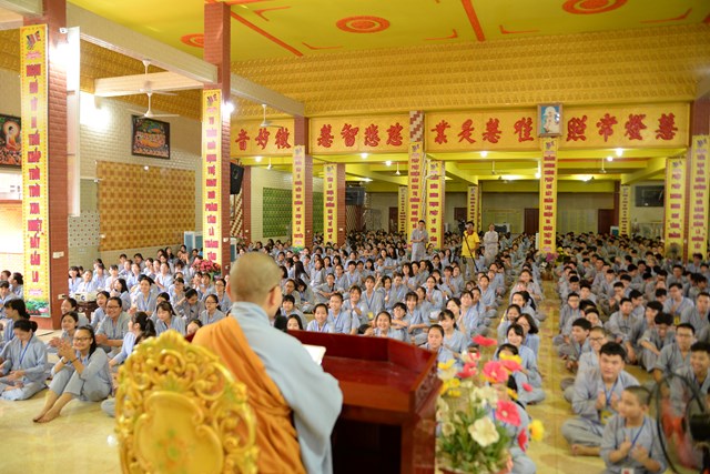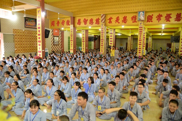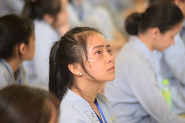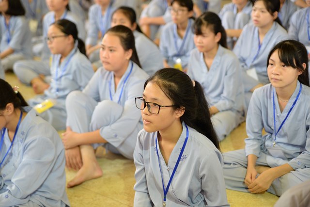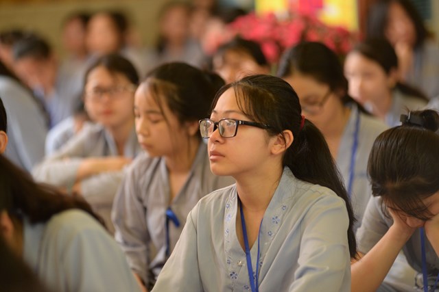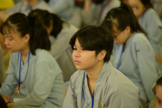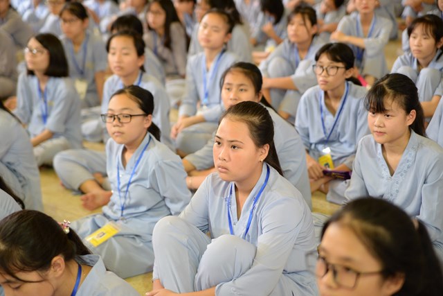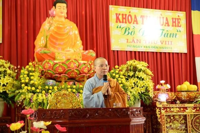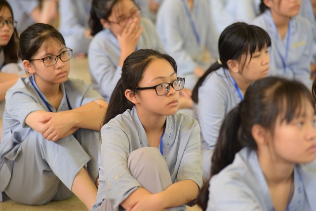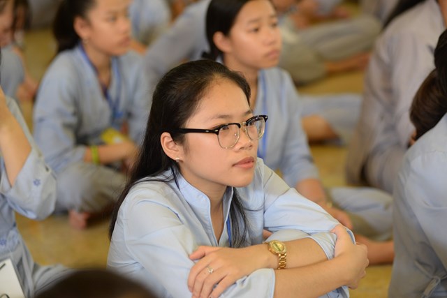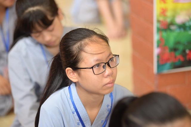Buổi sáng, các khóa sinh đã được nghe Sư cô Thích Giới Định thuyết giảng với chủ đề: “ Thần tượng”. Hiện nay, có rất nhiều bạn trẻ chạy theo trào lưu thần tượng hay fan hâm mộ, thậm chí là mất ăn, mất ngủ vì thần tượng nhưng các bạn không biết rằng ngay bên cạnh các bạn đã có những người luôn âm thầm, lặng lẽ theo dõi các bạn hàng ngày, hy sinh cho các bạn cả cuộc đời, đó chính là Cha và Mẹ và đây mới chính là thần tượng của các bạn, những người đã cho các bạn hình hài như ngày hôm nay. Do đó, các bạn cần phải biết quan tâm, động viên cha mẹ, bởi chỉ có họ mới mang lại niềm vui và niềm hạnh phúc cho các bạn.